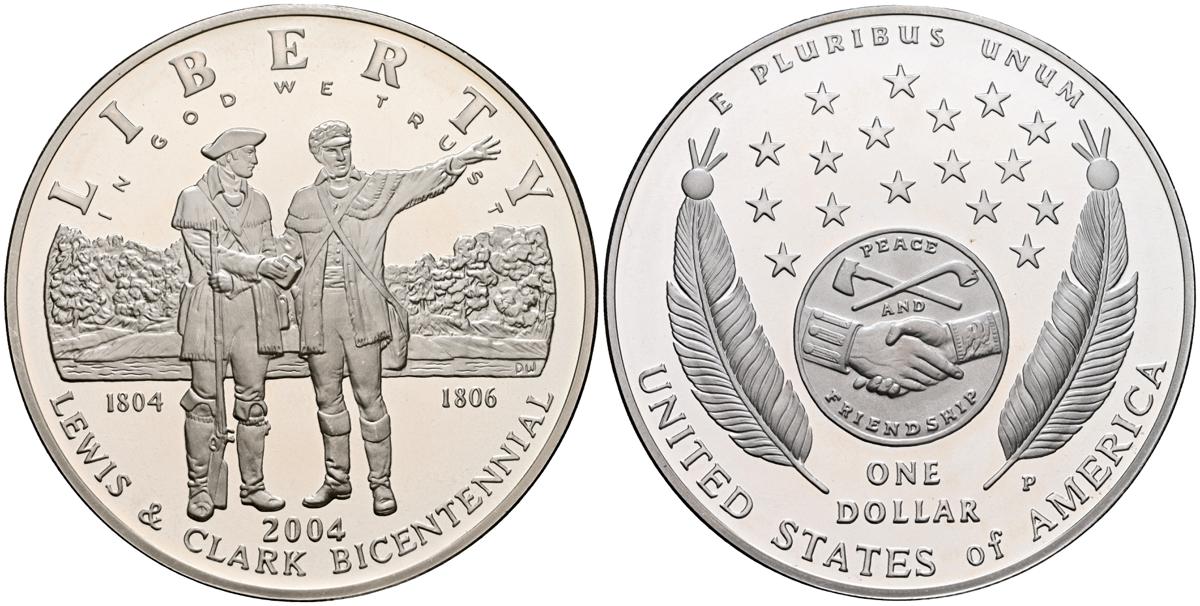 ESTADOS UNIDOS. 1 Dollar. (Ar. 27,34g/38mm). 2004. Philadelphia P. Bicentenario de la expedición de Lewis y Clark. (Km#363). PROOF.