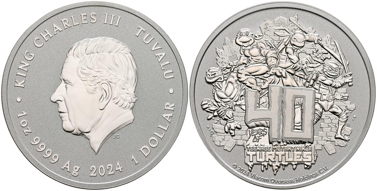 TUVALU. 1 Dollar. (Ar. 31,35g/40mm). 2024. 40 Aniversario de las Tortugas Ninjas. SC.