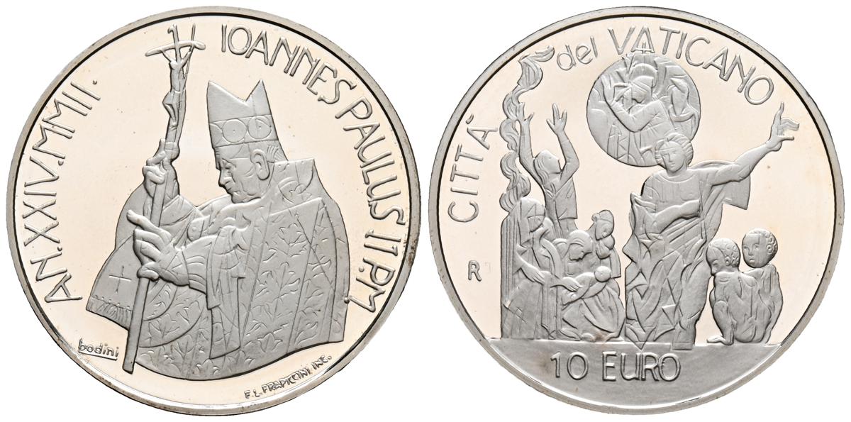 VATICANO. 10 Euros. (Ar. 22,00g/34mm). 2002. Juan Pablo II. Jornada Mundial de la Paz. (Km#350). PROOF. Incluye estuche y certificado de autenticidad.