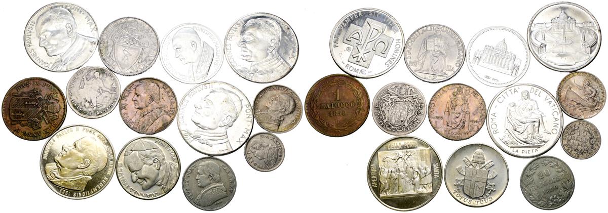 VATICANO. Bonito conjunto de 13 piezas (monedas y medallas) con gran variedad de módulos, fechas y materiales (incluyendo la plata). Diferentes estados de conservación. A EXAMINAR.