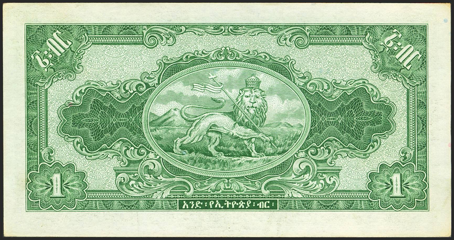 ETHIOPIA. 1 Dollar. (1945ca). State Bank. (Pick: 12c). Stains. Less than Uncirculated.