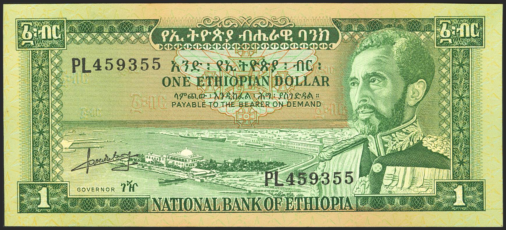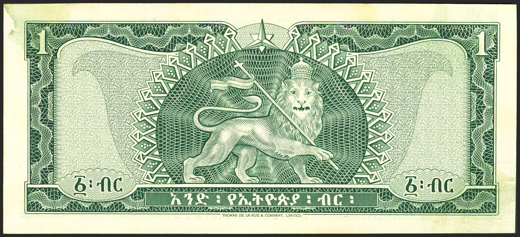 ETHIOPIA. 1 Dollar. (1966ca). National Bank. (Pick: 25). Stains. Less than Uncirculated.
