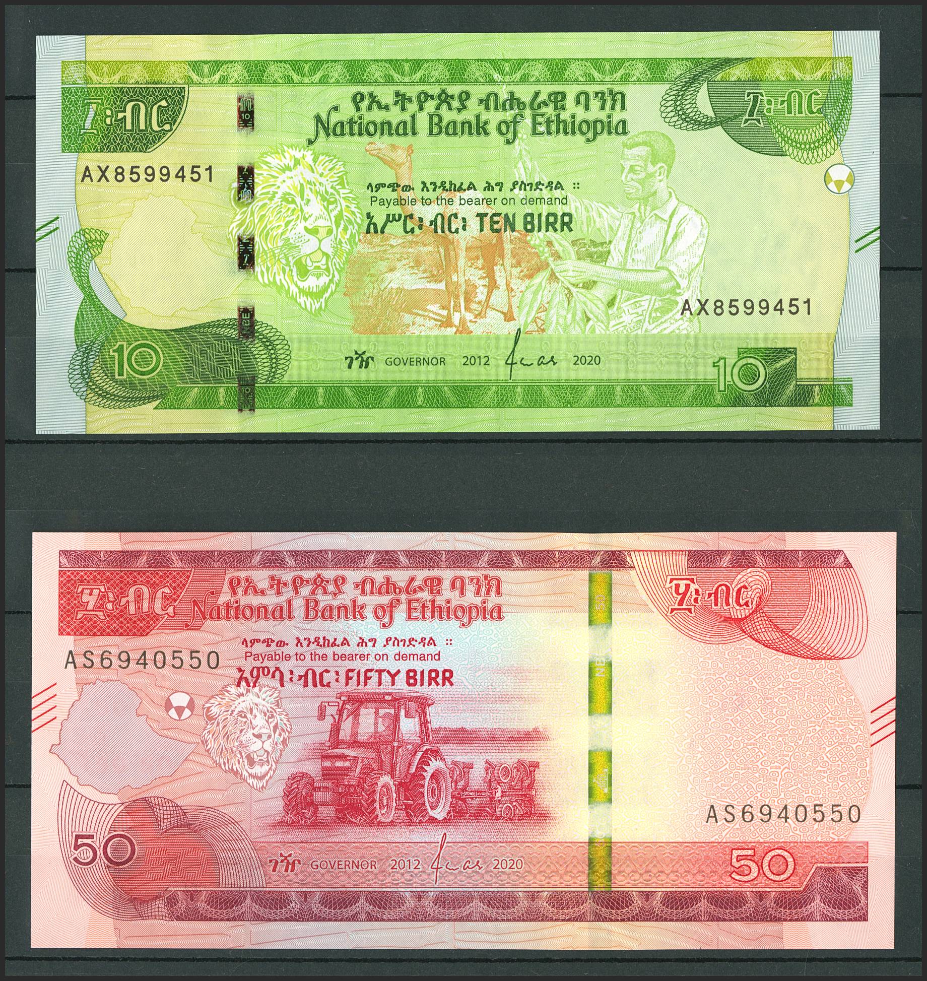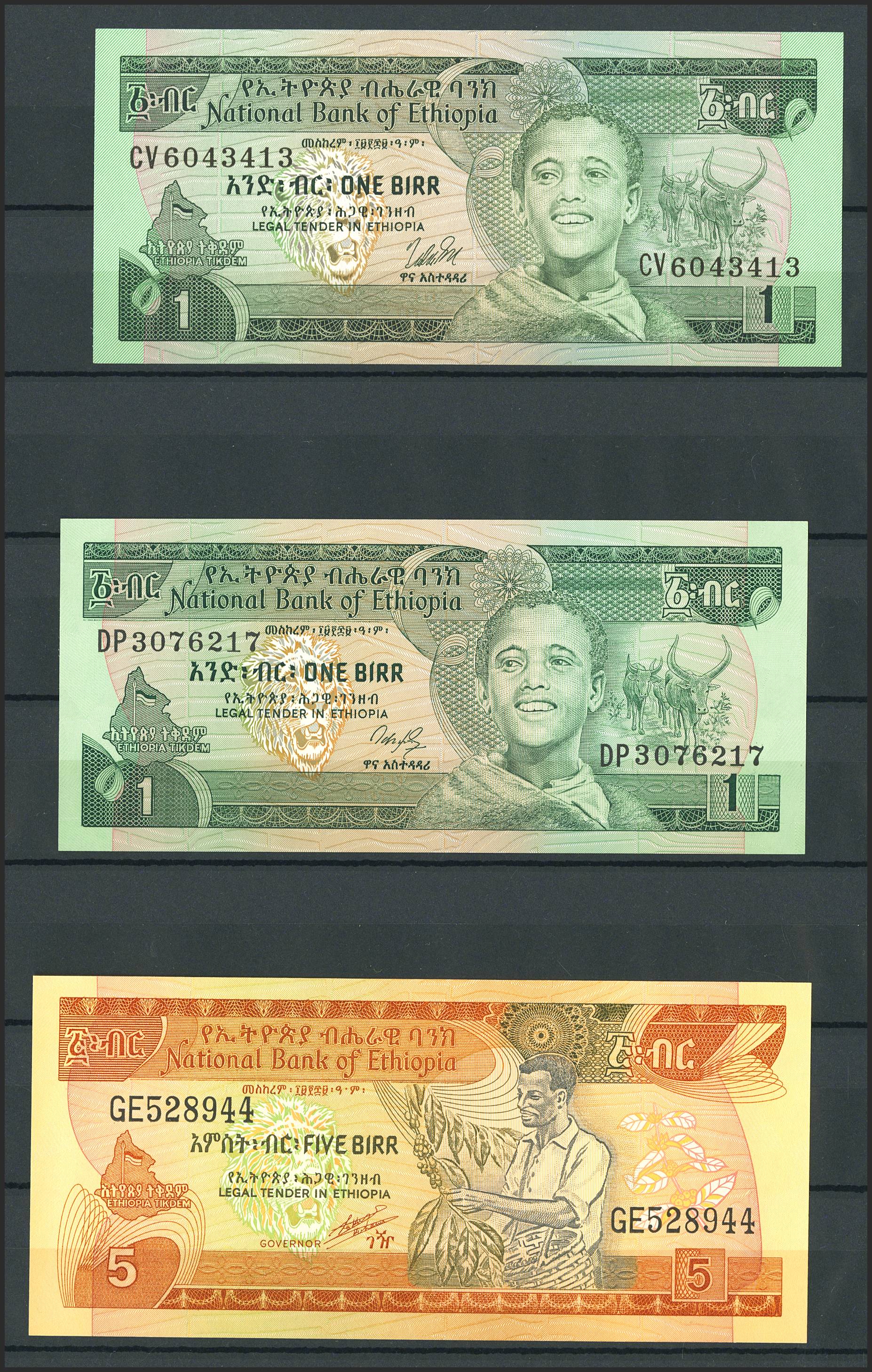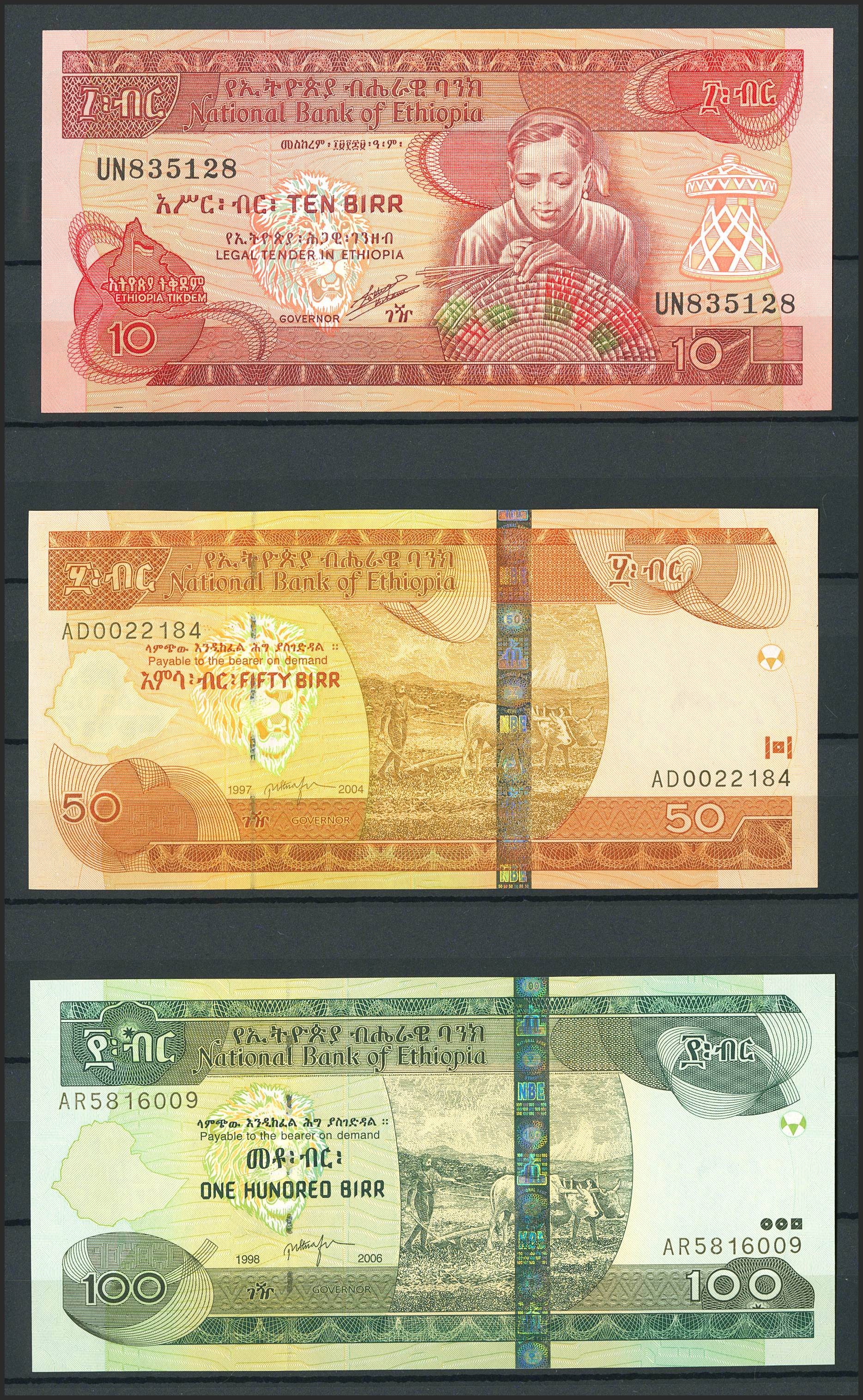 Set of 10 banknotes from Ethiopia of various issues, most of them nice quality. TO EXAM.