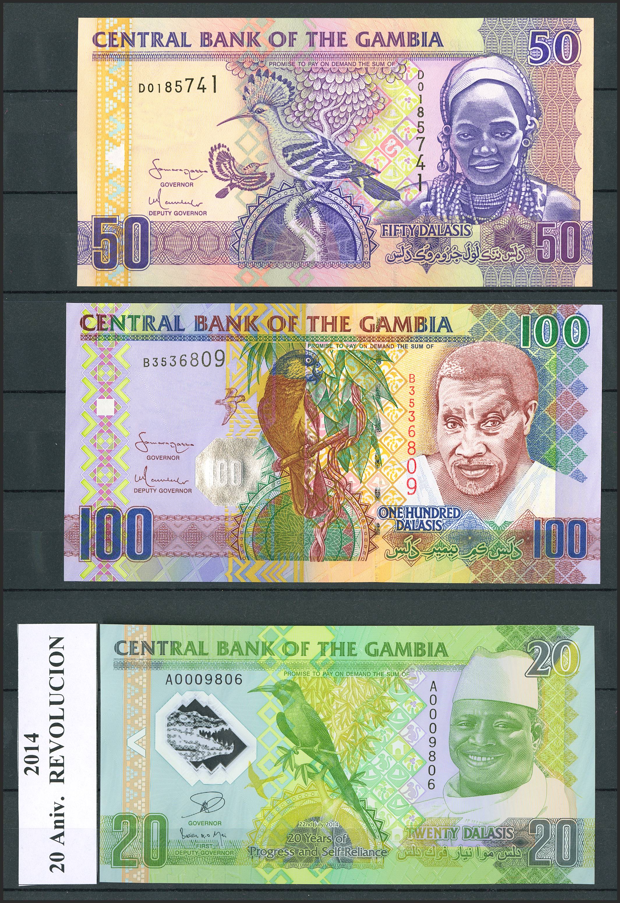 VERY INTERESTING set of 36 banknotes from Gambia of various issues, different qualities. ESSENTIAL TO EXAM.