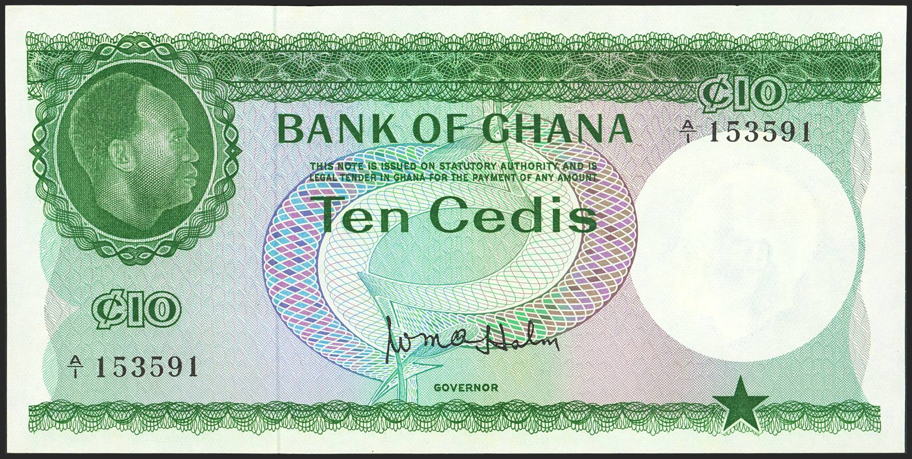 GHANA. 10 Cedis. (1965ca). Bank of Ghana. (Pick: 7). Uncirculated.