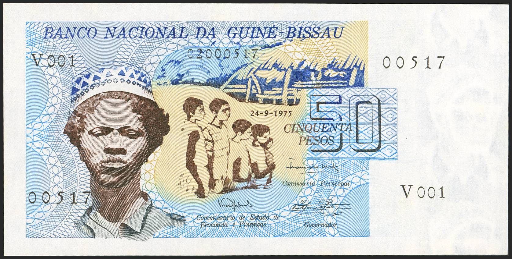 GUINEA-BISSAU. 50 Pesos. 24 September 1975. Low numeration. National Bank. (Pick: 1). Uncirculated.