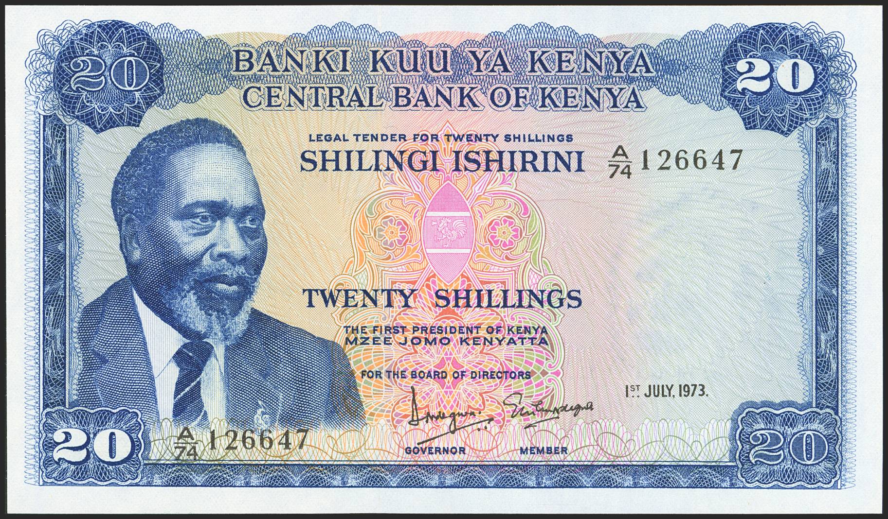 KENYA. 20 Shillings. 1 July 1974. Central Bank. (Pick: 8d). Uncirculated.