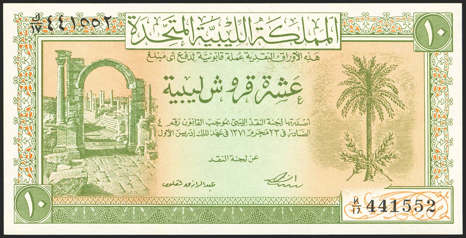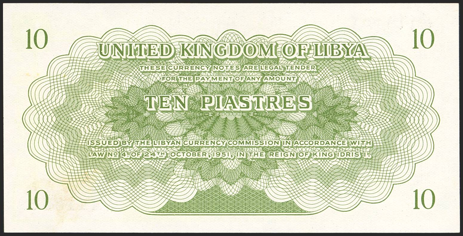LIBYA. 10 Piastres. 24 October 1951. Libyan Currency Commission. (Pick: 6). Uncirculated. PMG SI.
