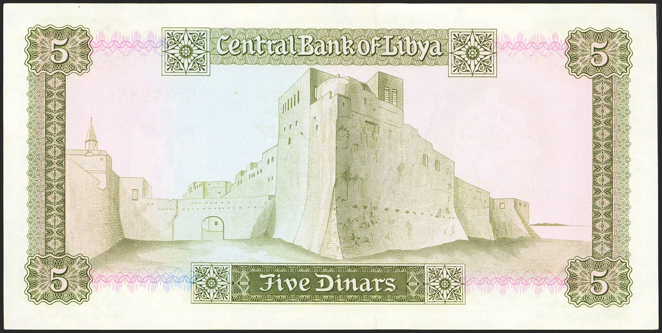 LIBYA. 5 Dinars. (1972ca). Central Bank. (Pick: 36b). Less than Uncirculated.