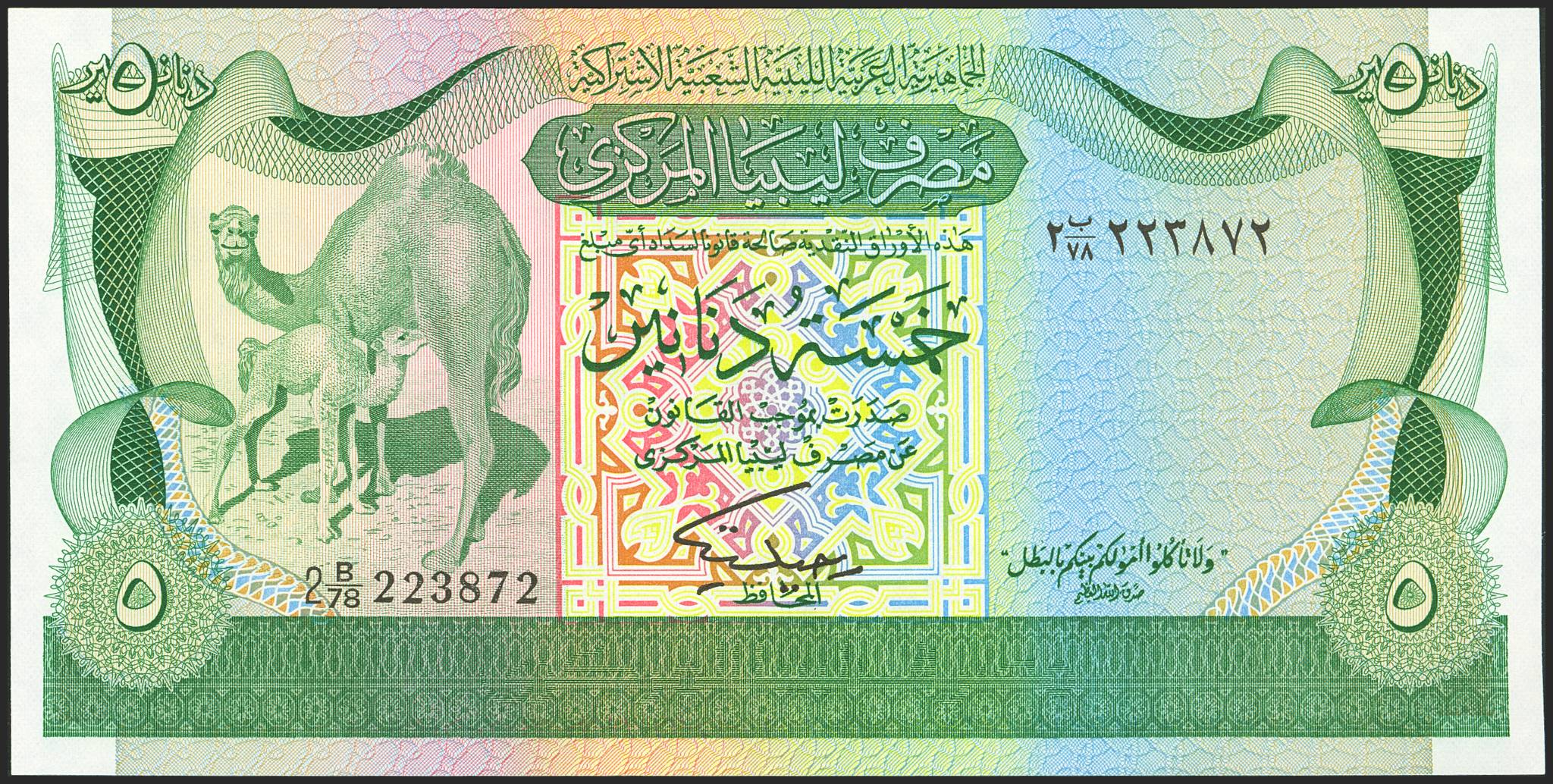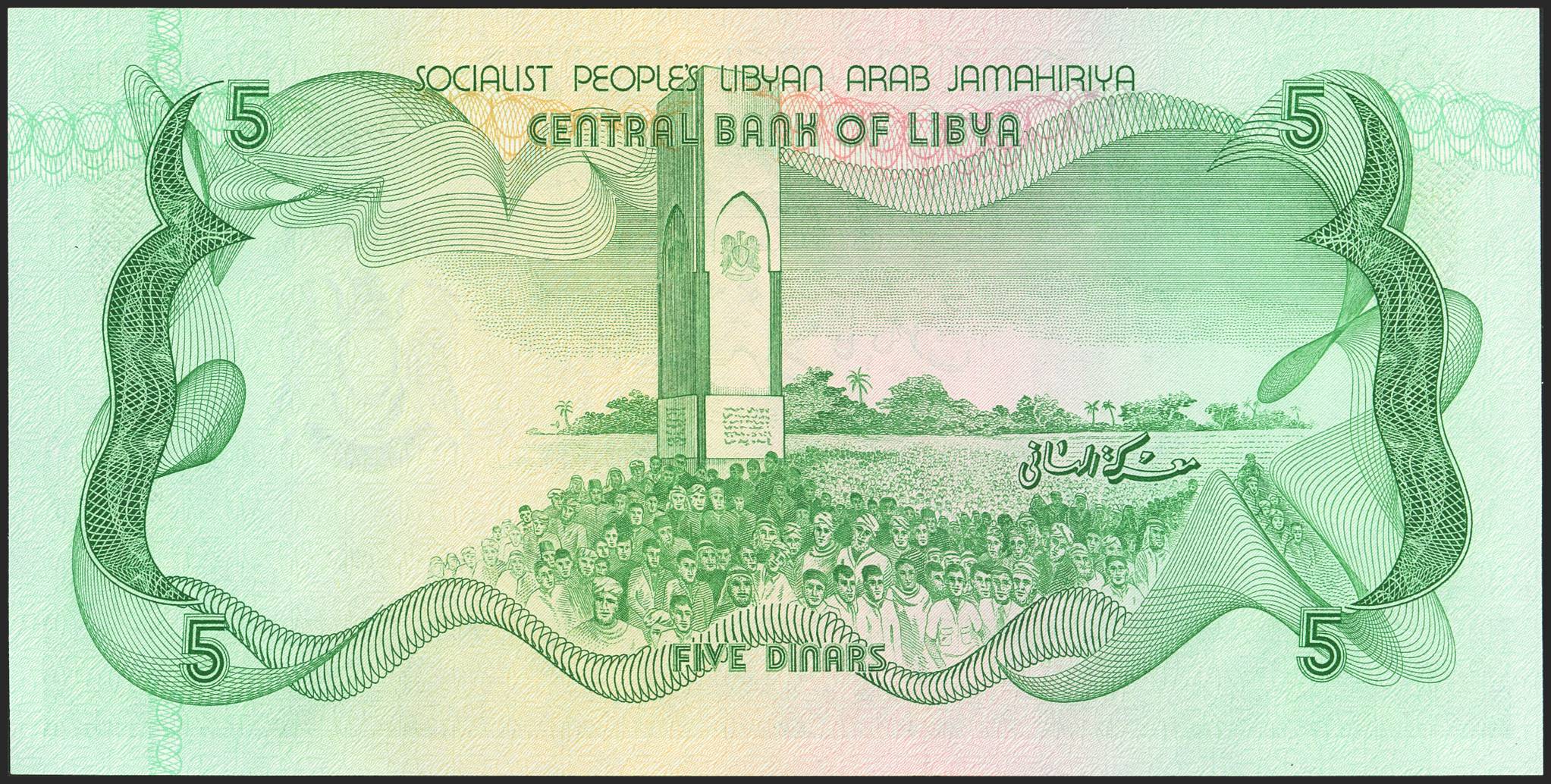 LIBYA. 5 Dinars. (1980ca). Central Bank. (Pick: 45b). Uncirculated.