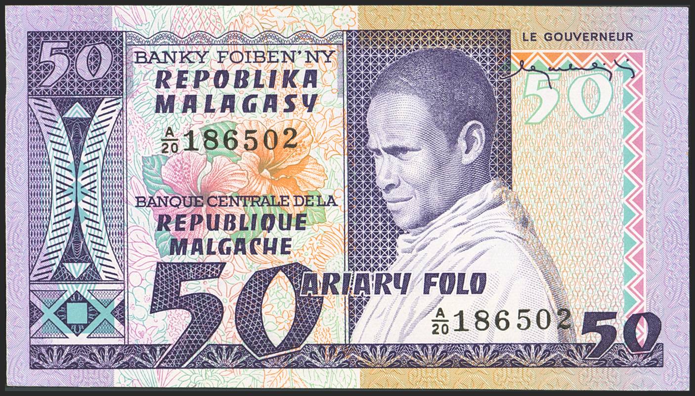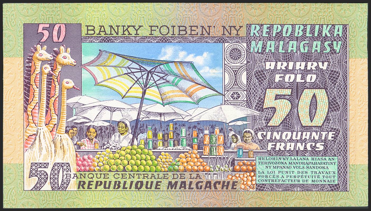 MADAGASCAR. 50 Francs. (1974ca). Banque Centrale de la Republique Malgache. (Pick: 62). Uncirculated.
