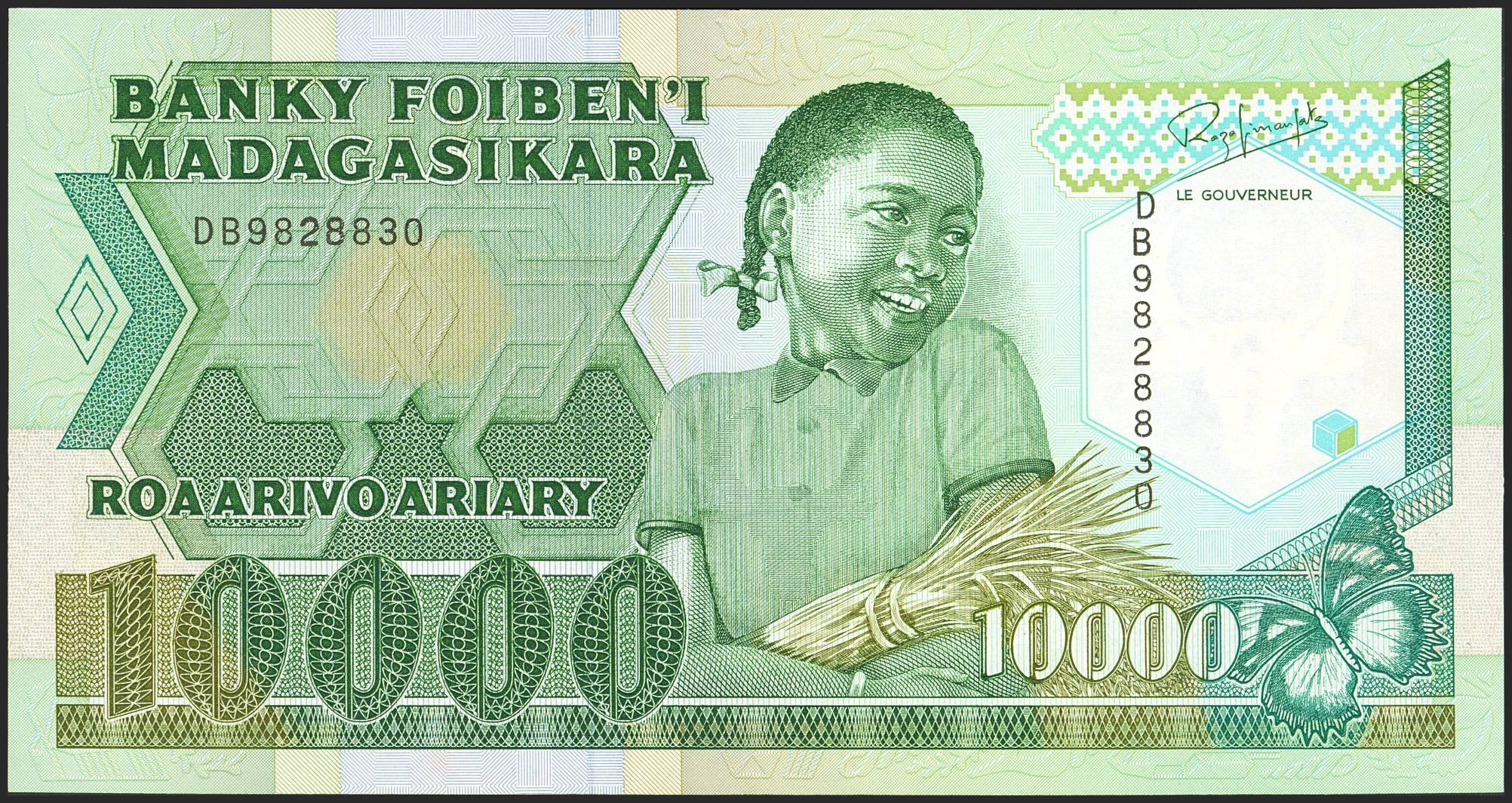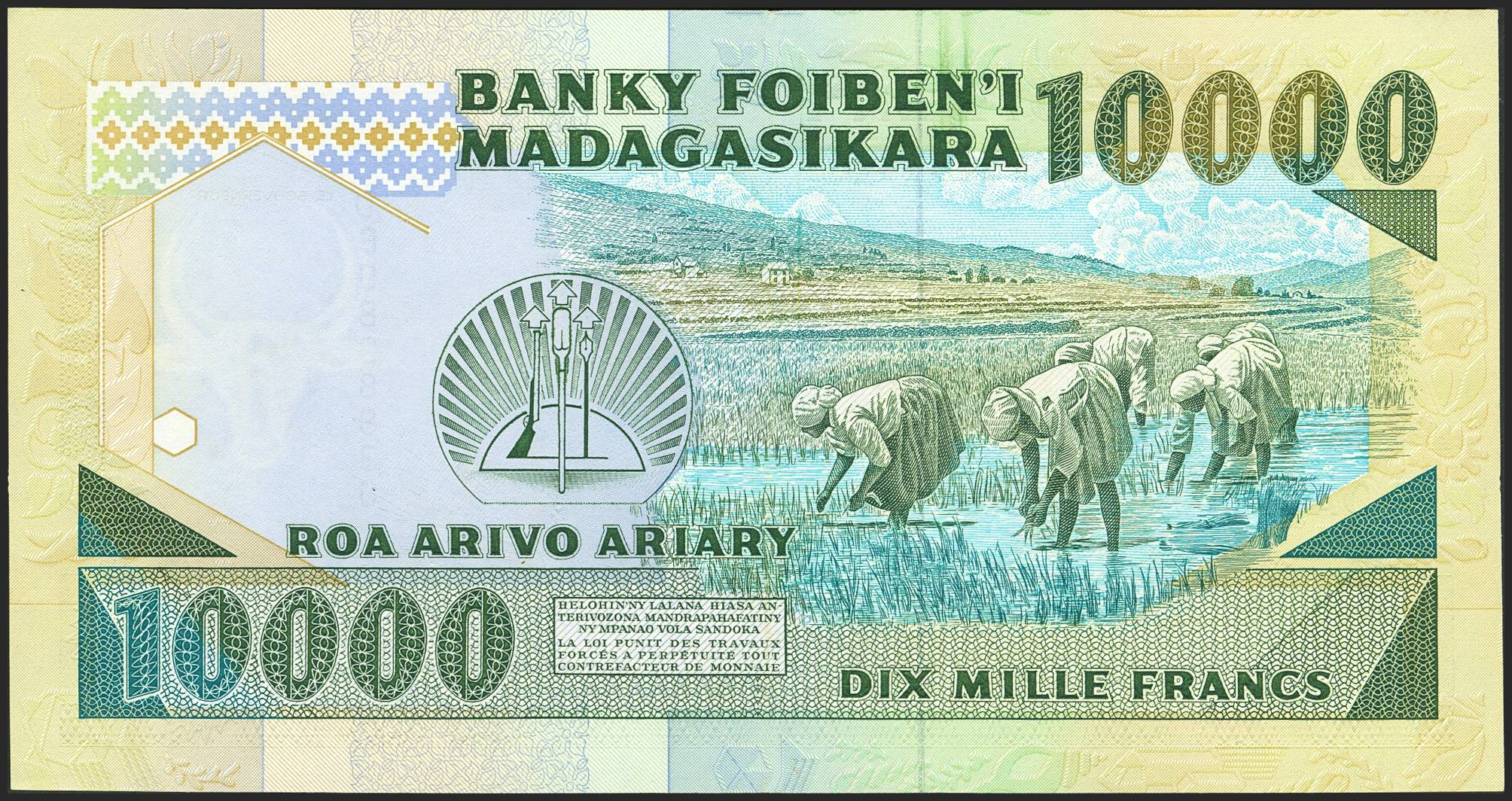 MADAGASCAR. 10000 Francs. (1993ca). Banky Foiben'i Madagasikara. (Pick: 74b). About Uncirculated.