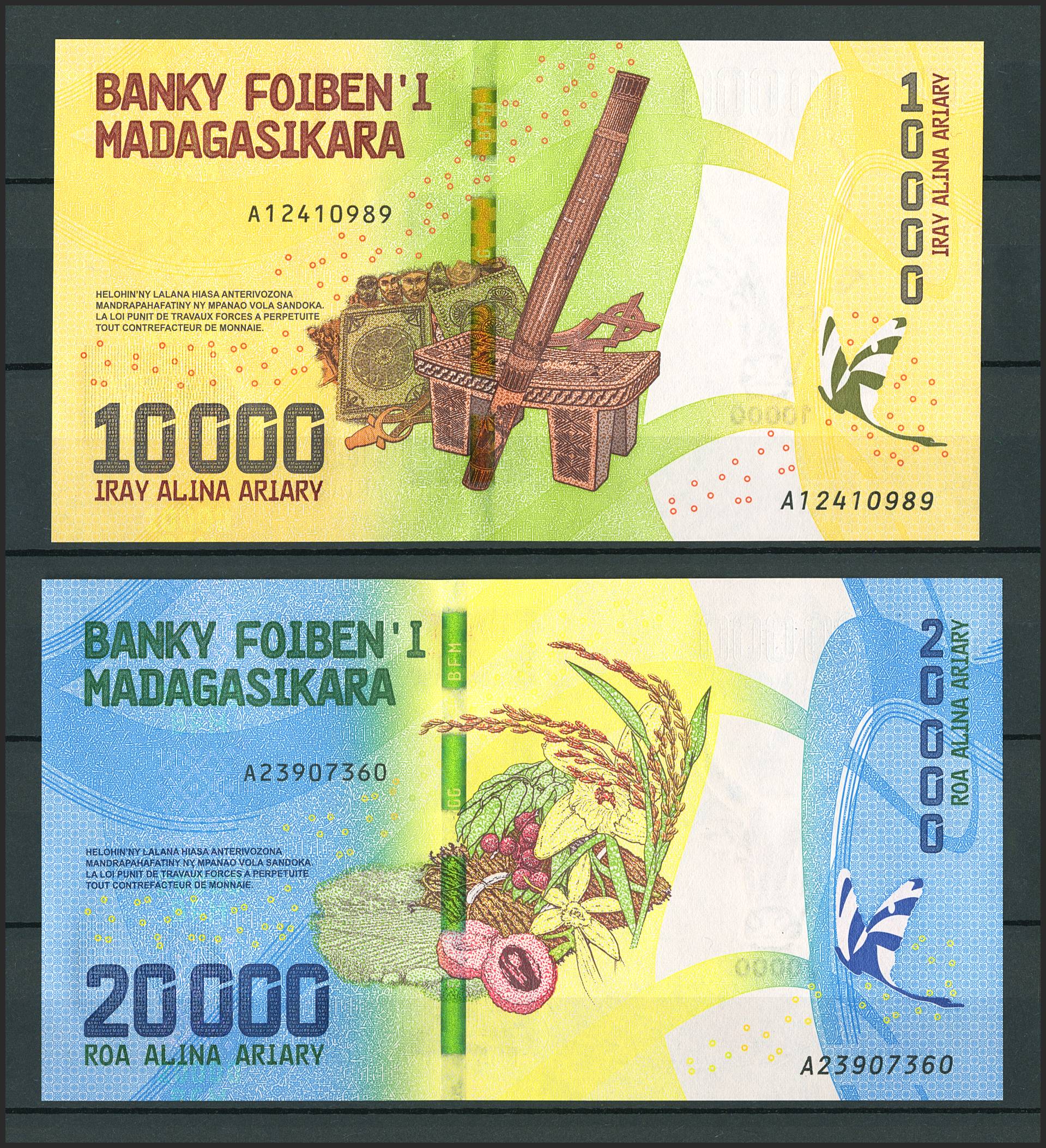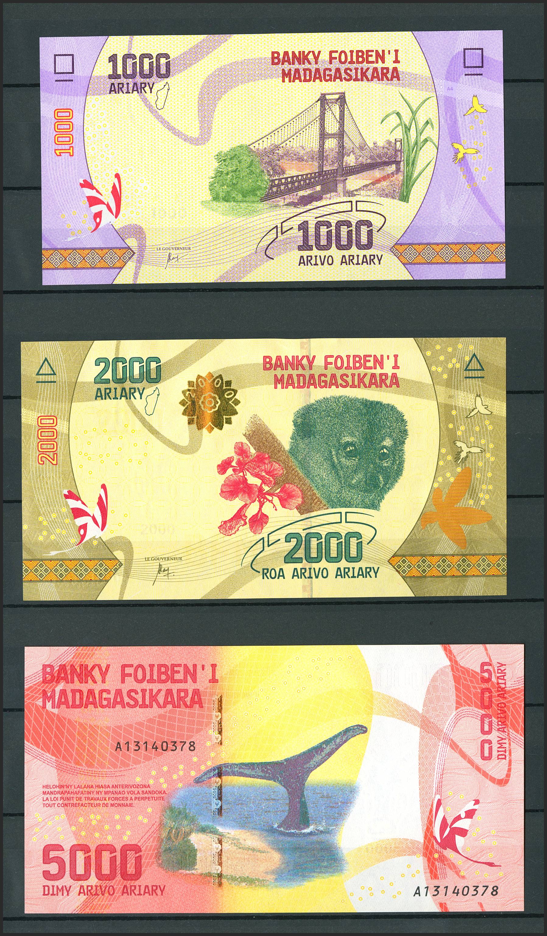 Set of 19 banknotes from Madagascar of various issues, different quality. TO EXAM.