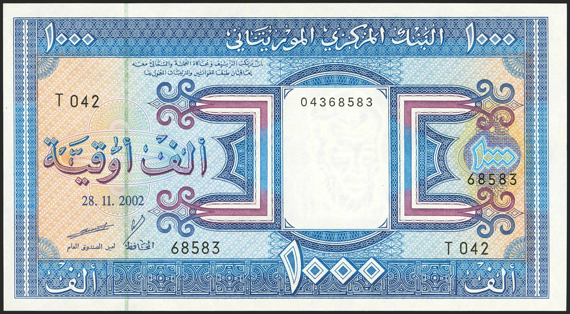 MAURITANIA. 1000 Ouguya. 28 November 2002. Banque Centrale. (Pick: 9c). Uncirculated.
