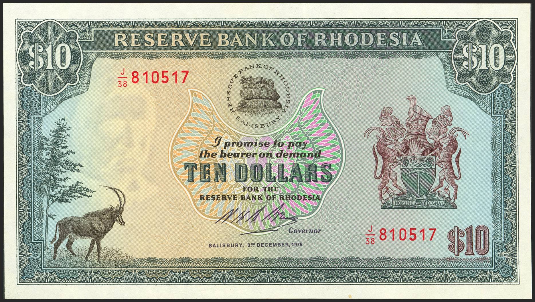 RHODESIA. 10 Dollars. 3 December 1975. Reserve Bank. (Pick: 33i). Less than Uncirculated.