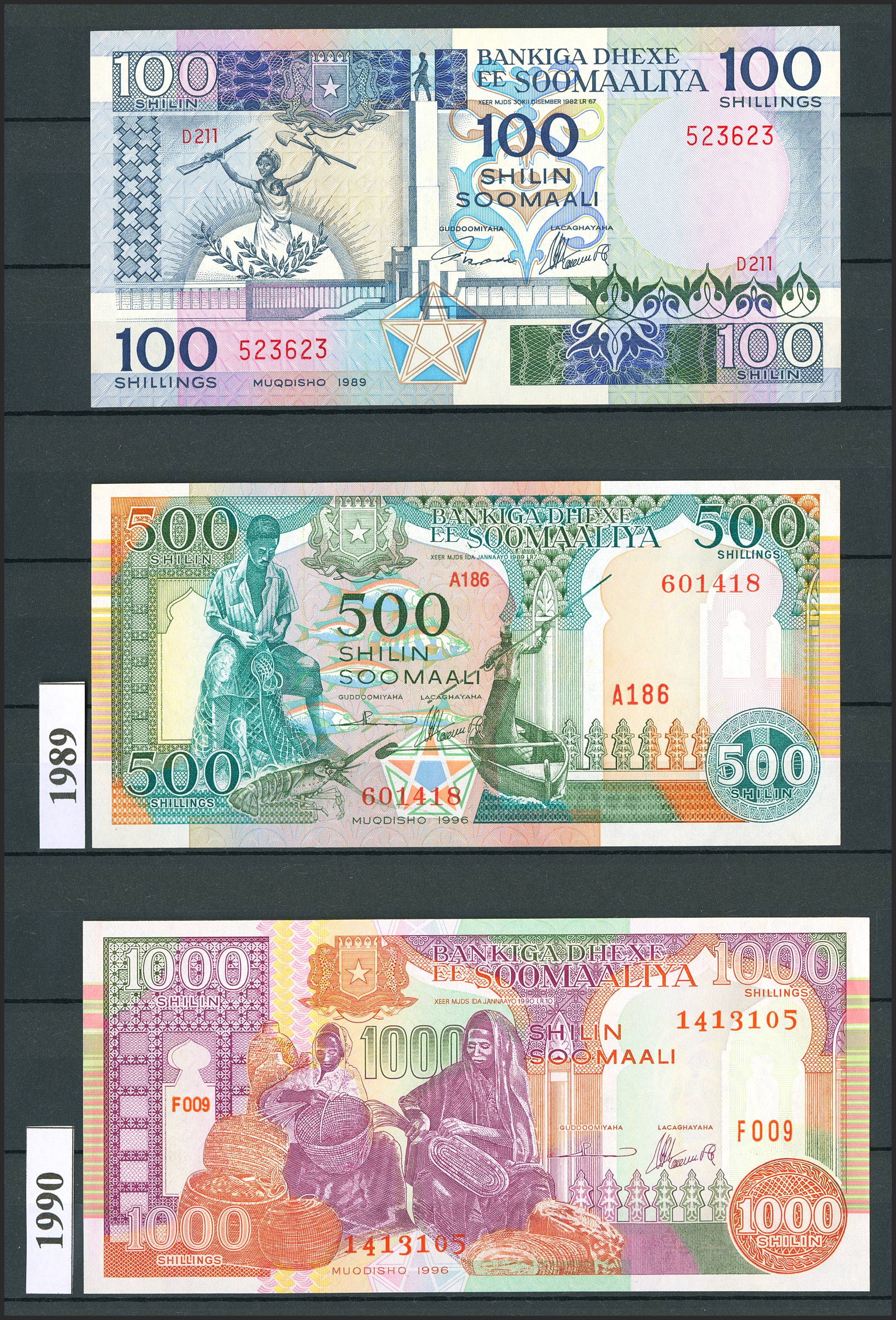Set of 9 banknotes from Somalia of various issues, different quality. TO EXAM.