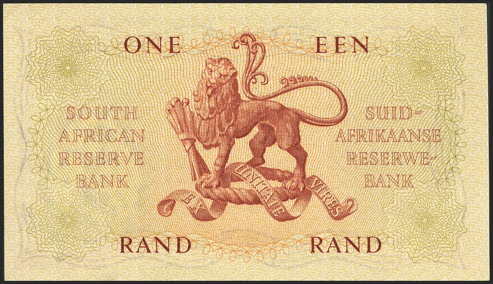 SOUTH AFRICA. 1 Rand. (1962ca). Reserve Bank. (Pick: 103b). Less than Uncirculated.