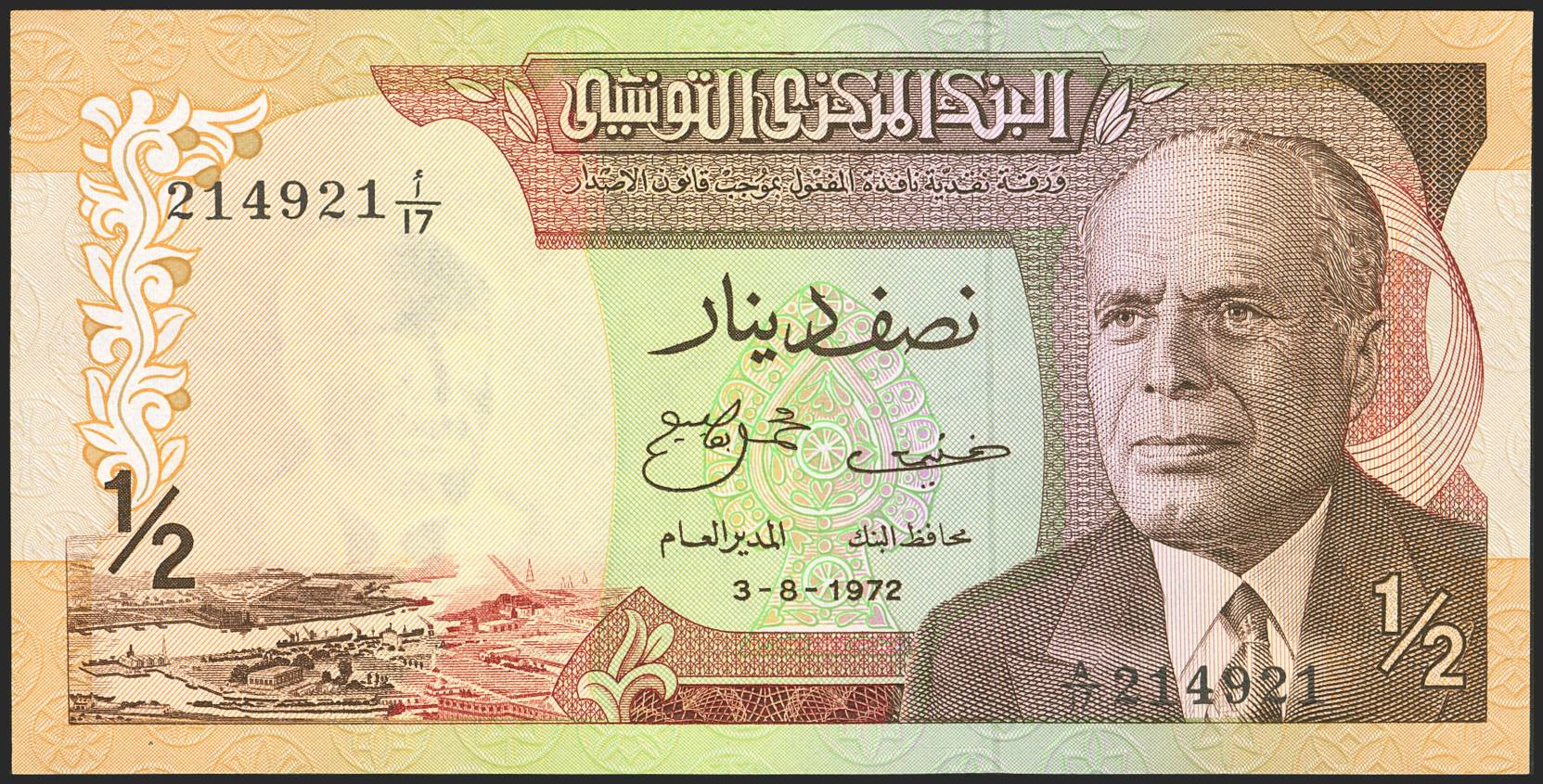 TUNISIA. ½ Dinar. 3 August 1972. Banque Centrale de Tunisie. (Pick: 66). Uncirculated.