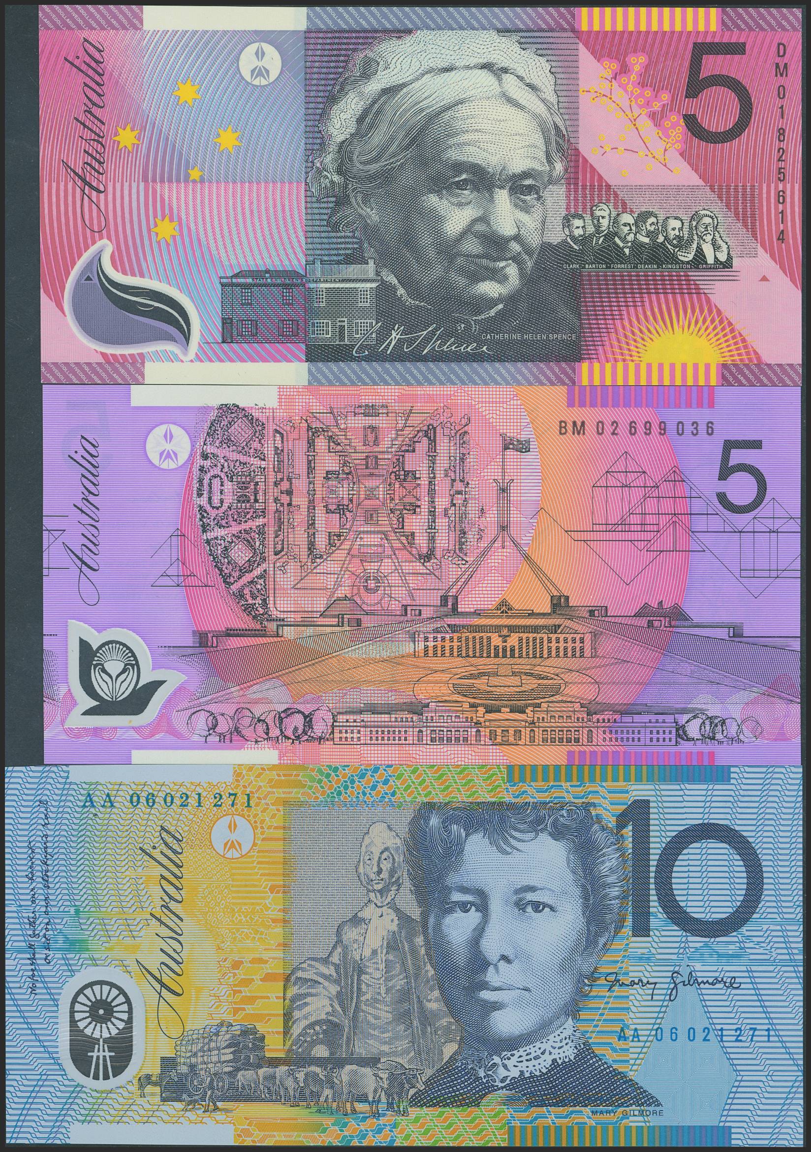 AUSTRALIA. Set of 3 notes of 5 Dollars (2) and 10 Dollars. (1992ca). Reserve Bank. (Pick: 56, 57, 58). Uncirculated.