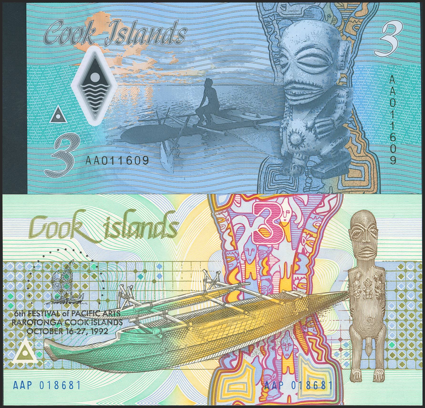 COOK ISLANDS. Set of 2 notes of 3 Dollars (2). (1992ca). New Zealand Admin. (Pick: 6, 11). Uncirculated.