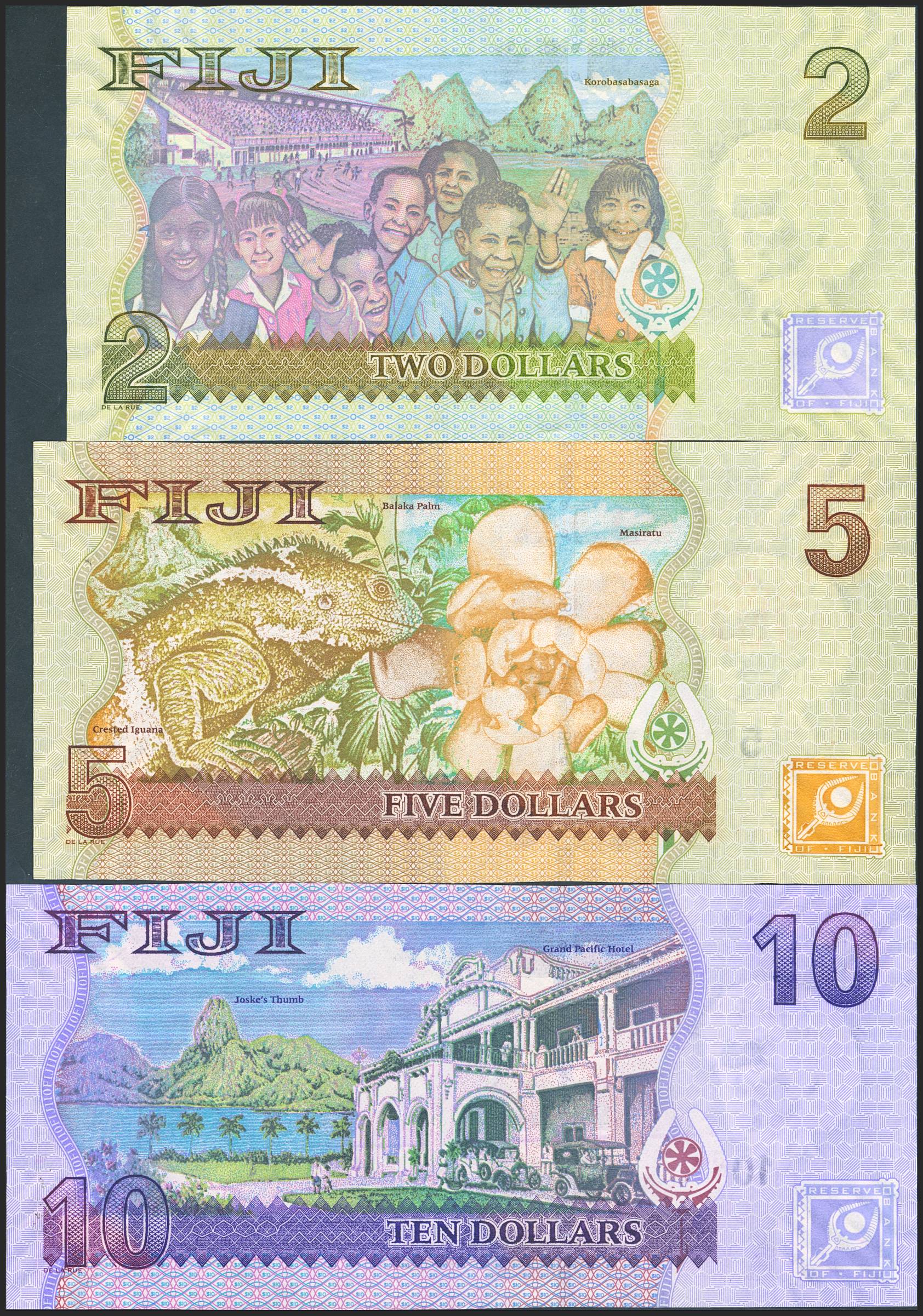 FIJI. Set of 3 notes of 2 Dollars, 5 Dollars and 10 Dollars. (2007ca). Reserve Bank. (Pick: 109a, 110a, 111a). Uncirculated.