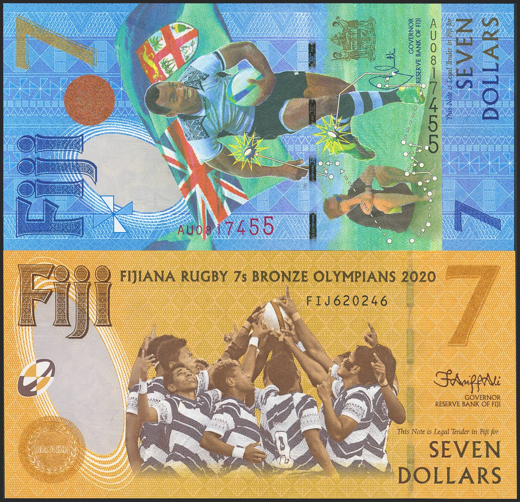 FIJI. Set of 2 notes of 7 Dollars (2). (2017ca). Reserve Bank. (Pick: 120, 122). Uncirculated.