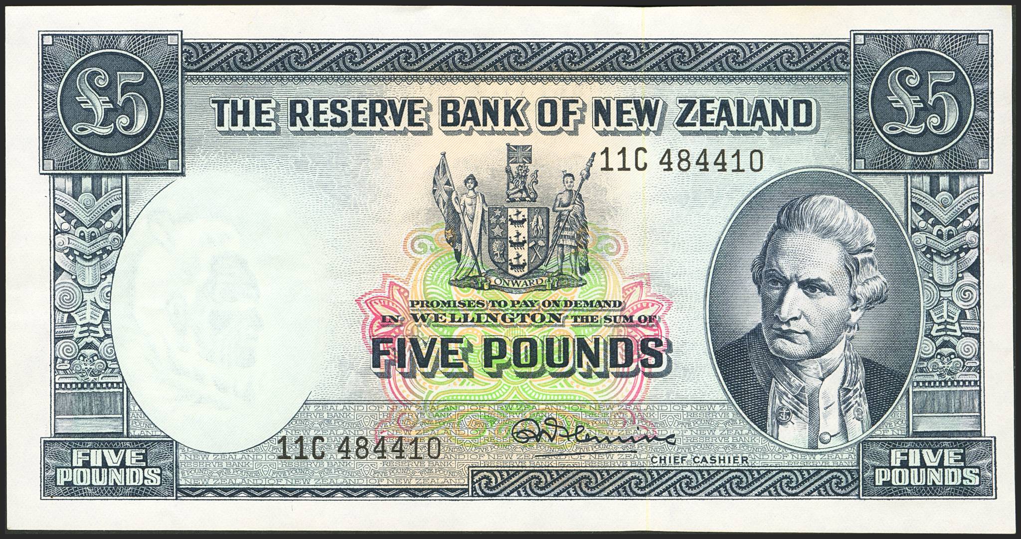 NEW ZEALAND. 5 Pounds. (1960ca). Reserve Bank. (Pick: 160d). Less than Extremely Fine.