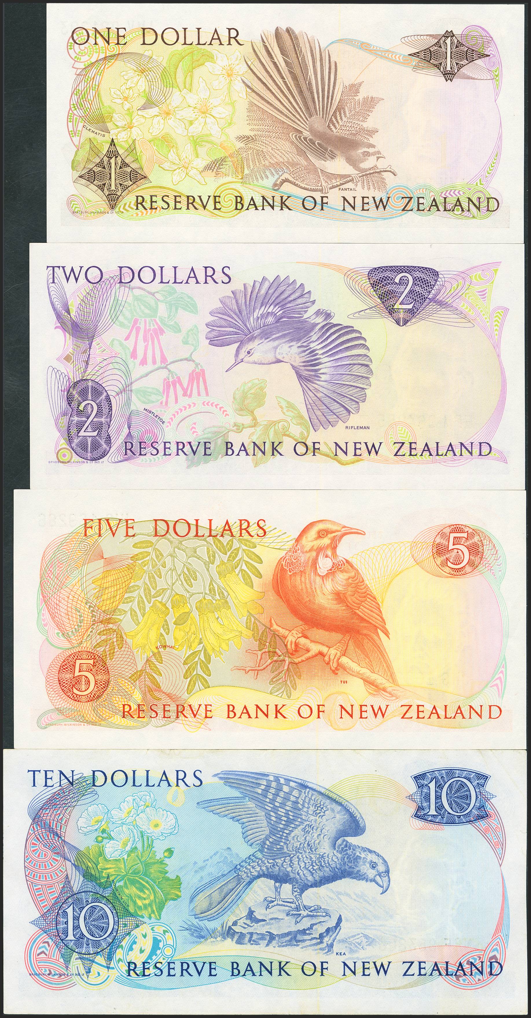 NEW ZEALAND. Set of 4 notes of 1 Dollar, 2 Dollars, 5 Dollars and 10 Dollars. (1989ca). Reserve Bank. (Pick: 169c, 170c, 171c, 172b). Uncirculated / Less than Uncirculated and Very Fine (172b).