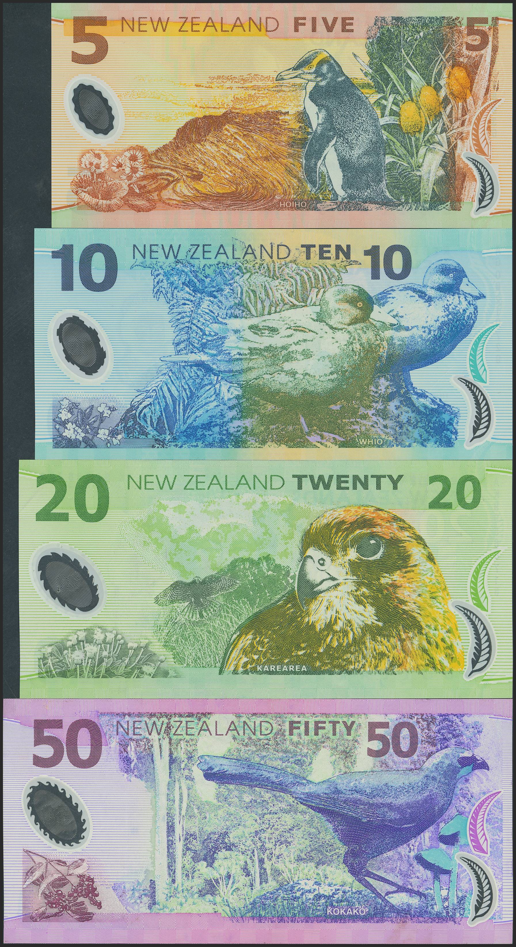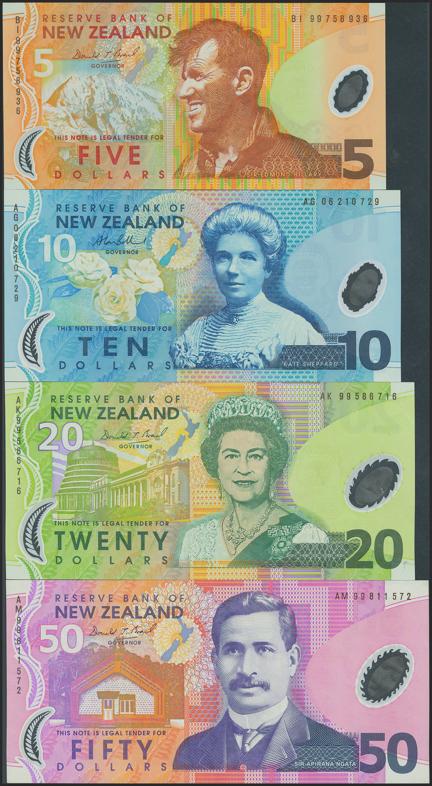 NEW ZEALAND. Set of 4 notes of 5 Dollars, 10 Dollars, 20 Dollars and 50 Dollars. (2007ca). Reserve Bank. (Pick: 185a, 186b, 187a, 188a). Uncirculated / About Uncirculated.