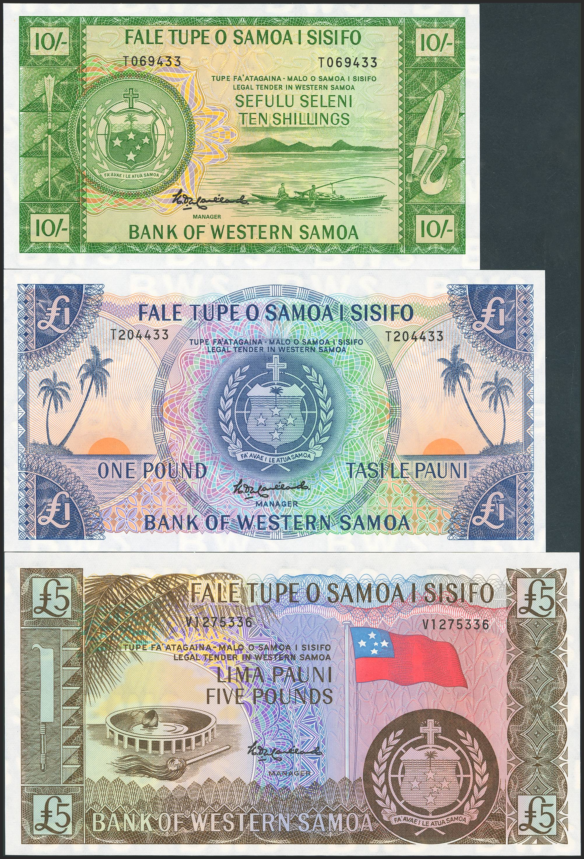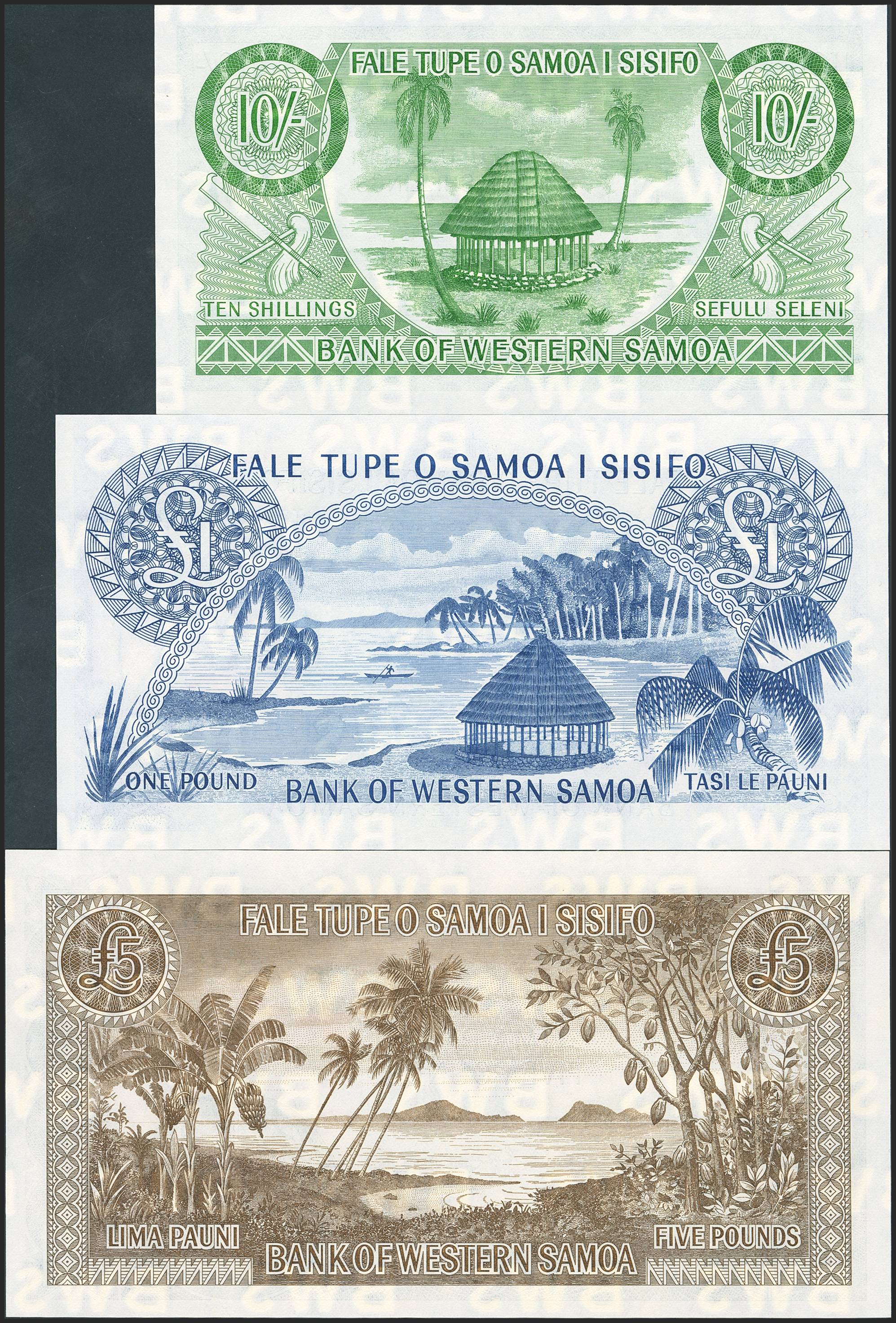 SAMOA. Set of 3 notes of 1 Pound, 2 Pounds and 5 Pounds. (1963ca). Modern reprint. Bank of Western Samoa. (Pick: 13, 14, 15). Uncirculated.