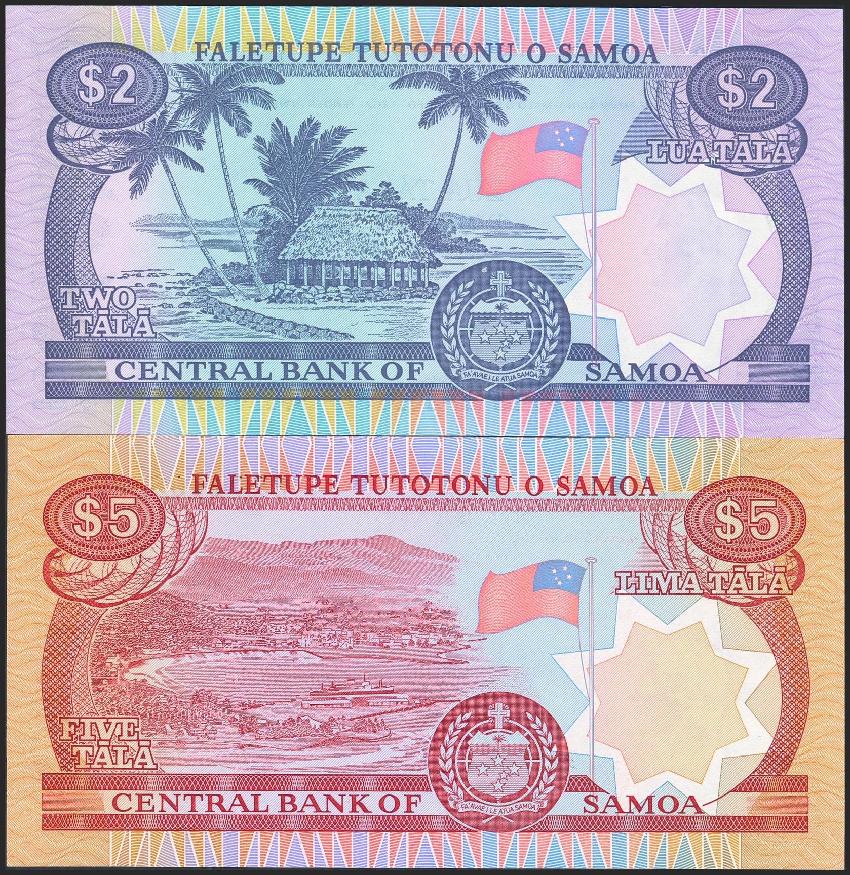 SAMOA. Set of 2 notes of 2 Dollars and 5 Dollars. (1985ca). Central Bank. (Pick: 25, 26). Uncirculated.