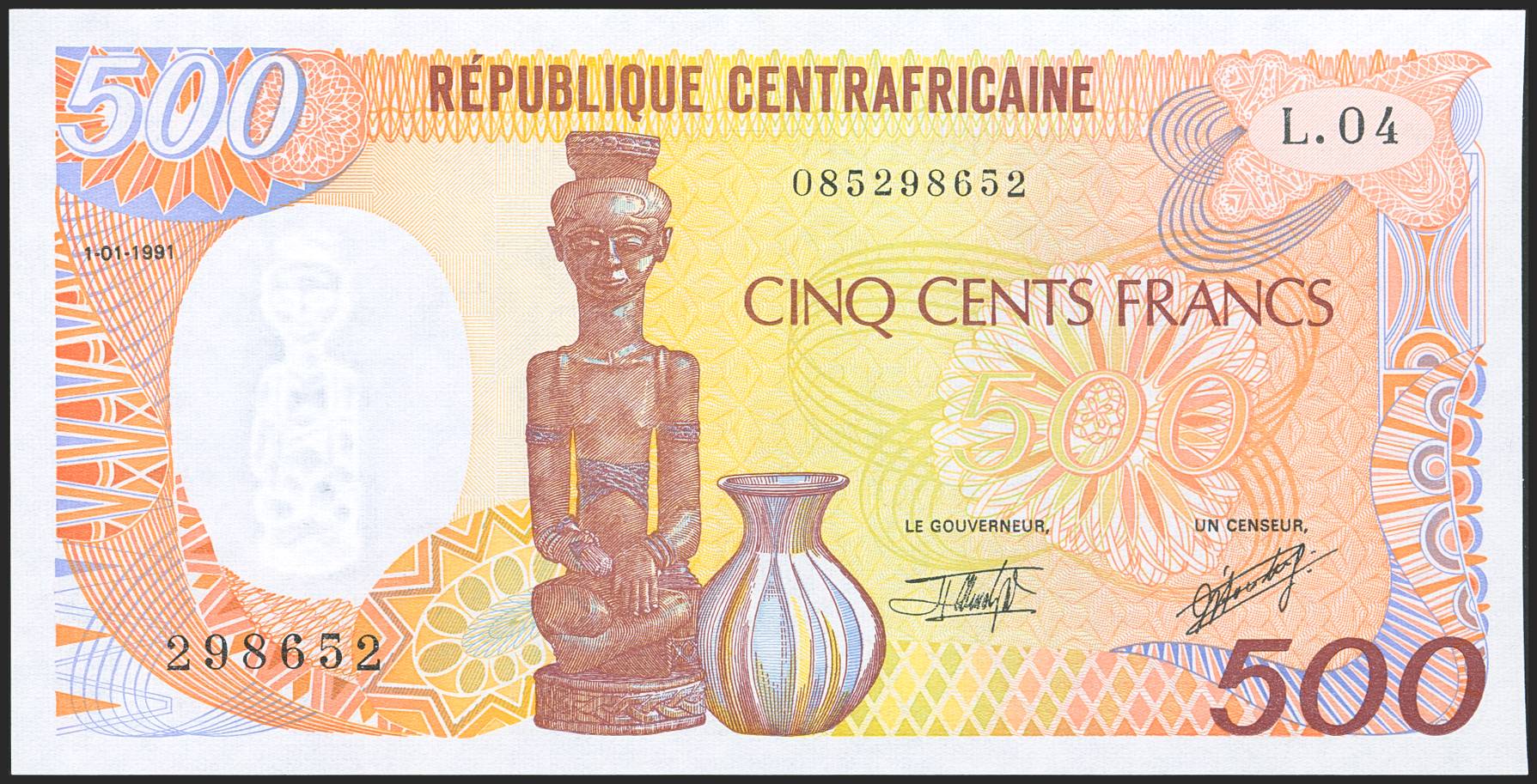 CENTRAL AFRICAN REPUBLIC. 500 Francs. 1 January 1991. Republique Centroafricane. (Pick: 14). Uncirculated.