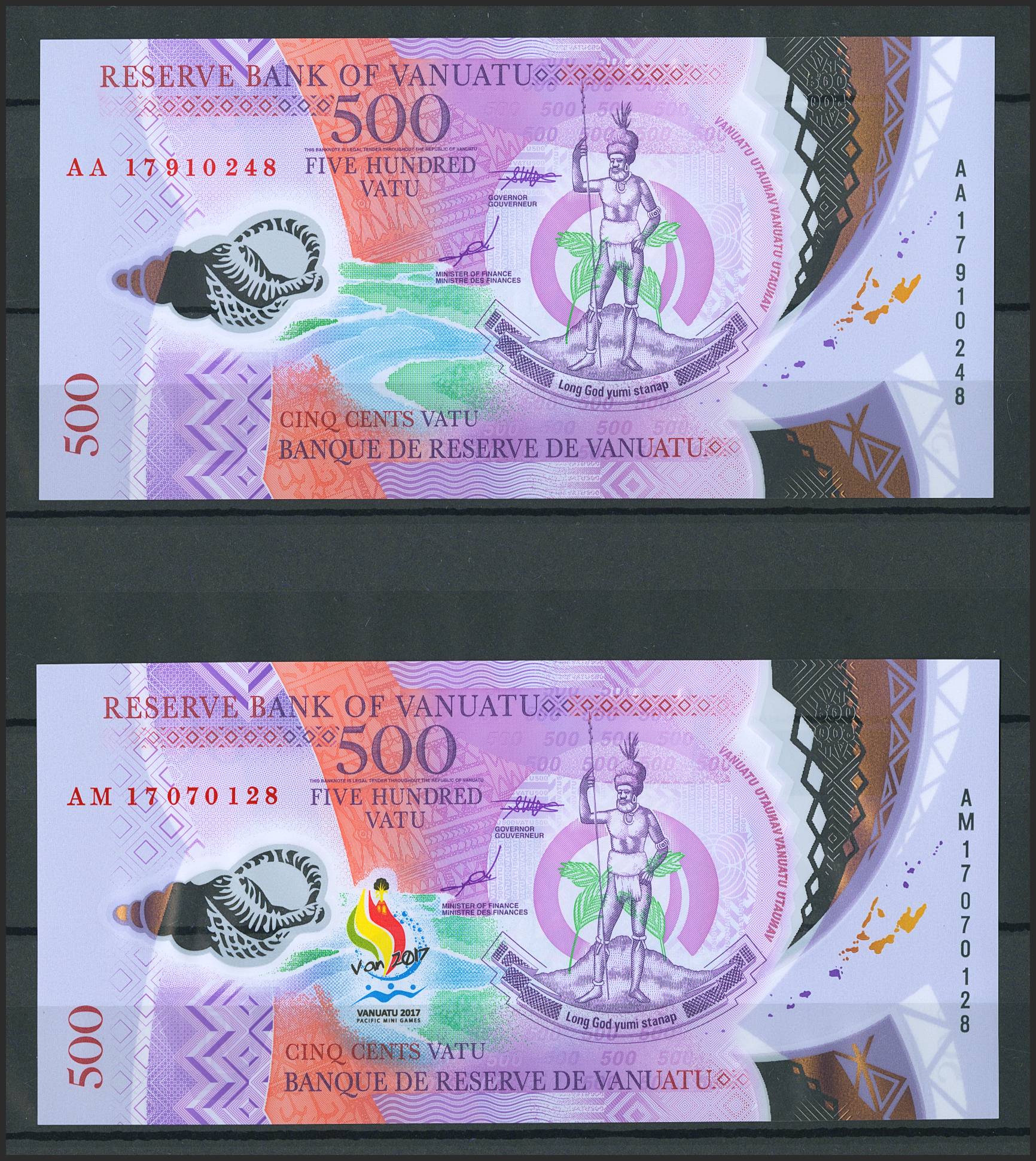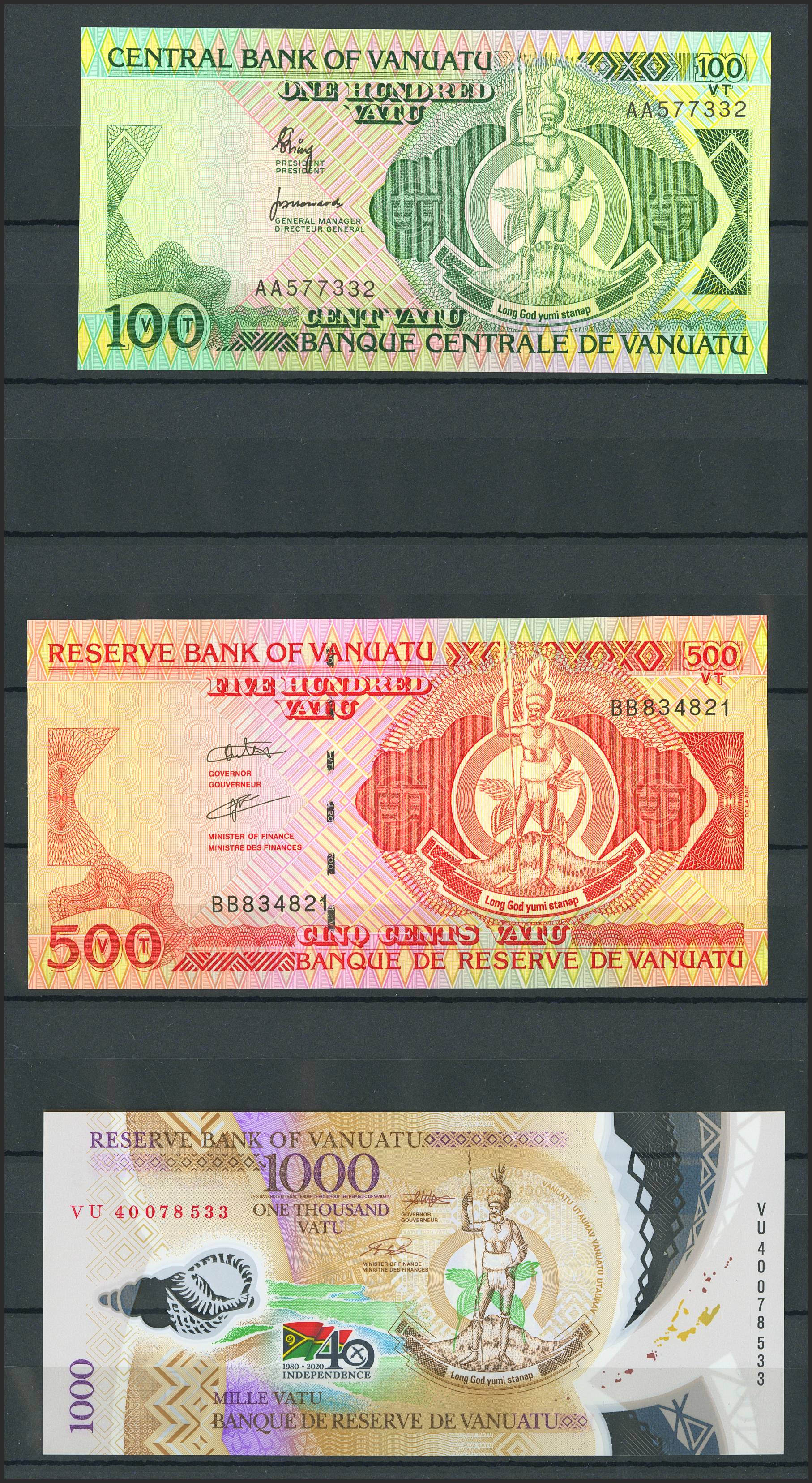 Set of 5 banknotes from Vanuatu of various issues, most of them nice qualities. TO EXAM.