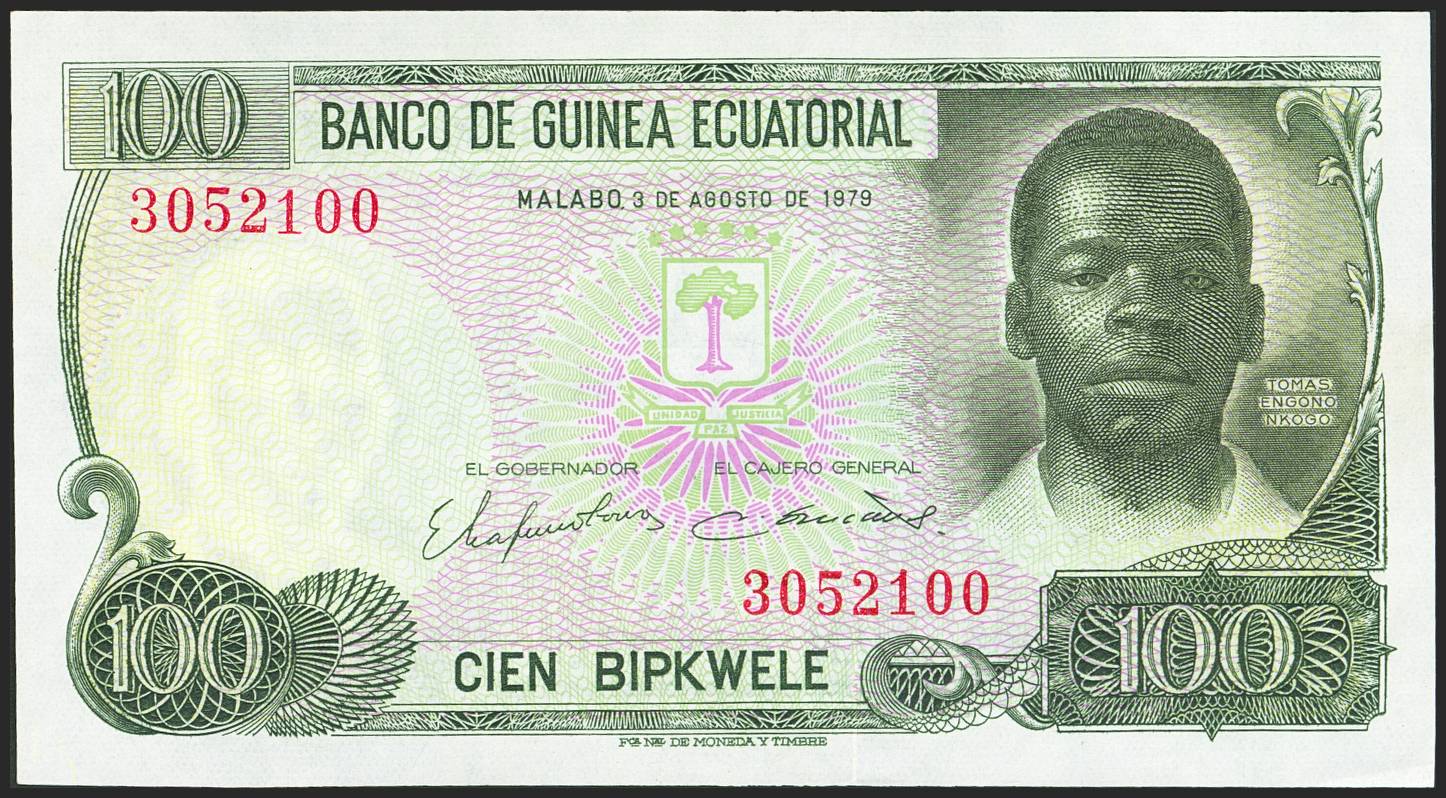 EQUATORIAL GUINEA. 100 Bipwele. 3 August 1979. Banco de Guinea Ecuatorial. (Pick: 14). Uncirculated.