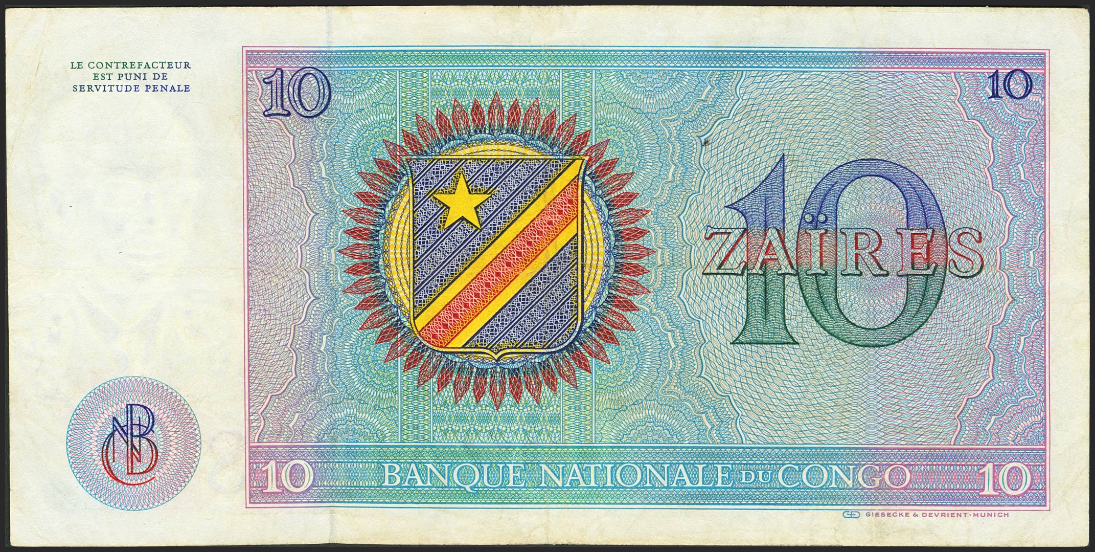 CONGO DEMOCRATIC REPUBLIC. 10 Zaires. 30 June 1971. Bank Nationale. (Pick: 15a). Very Fine.