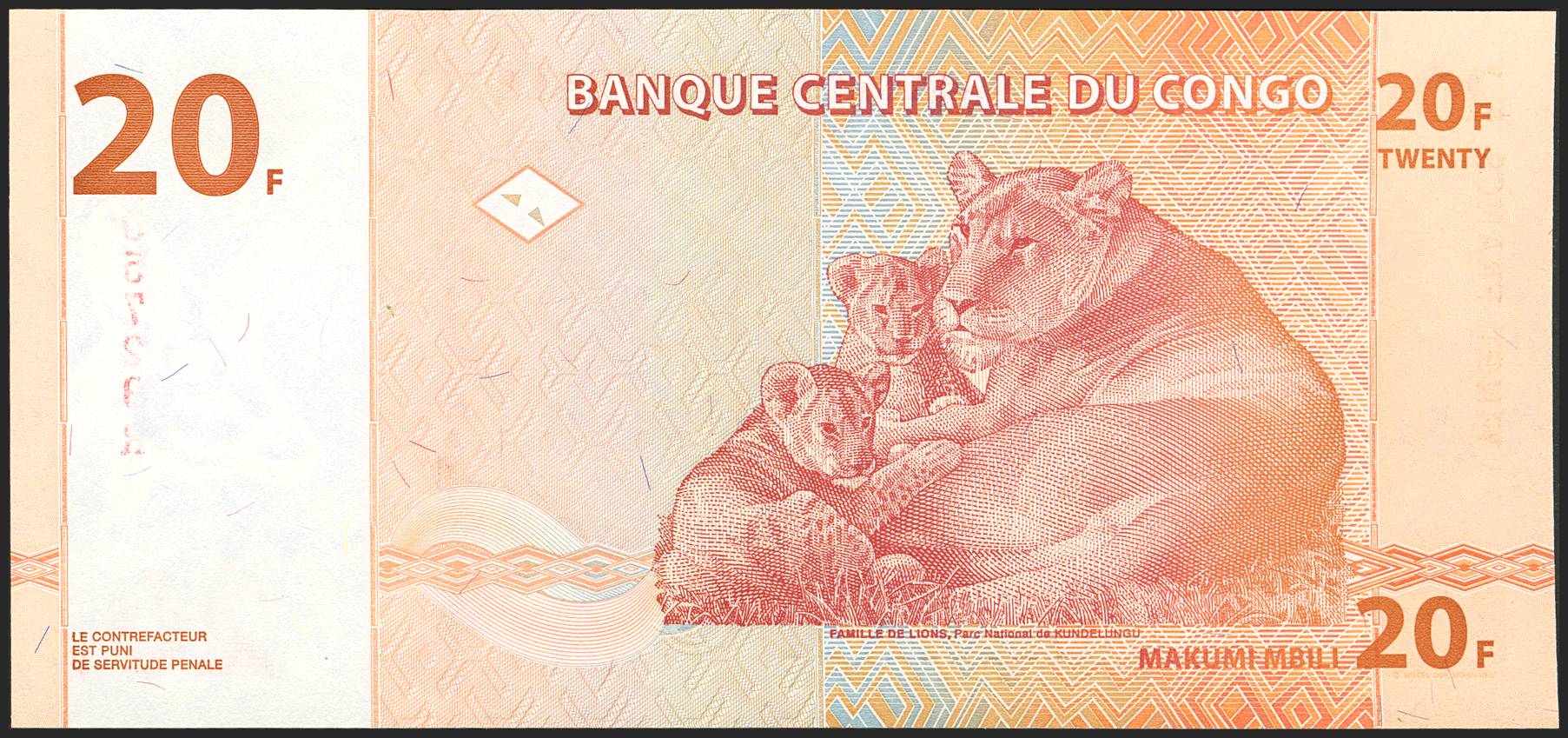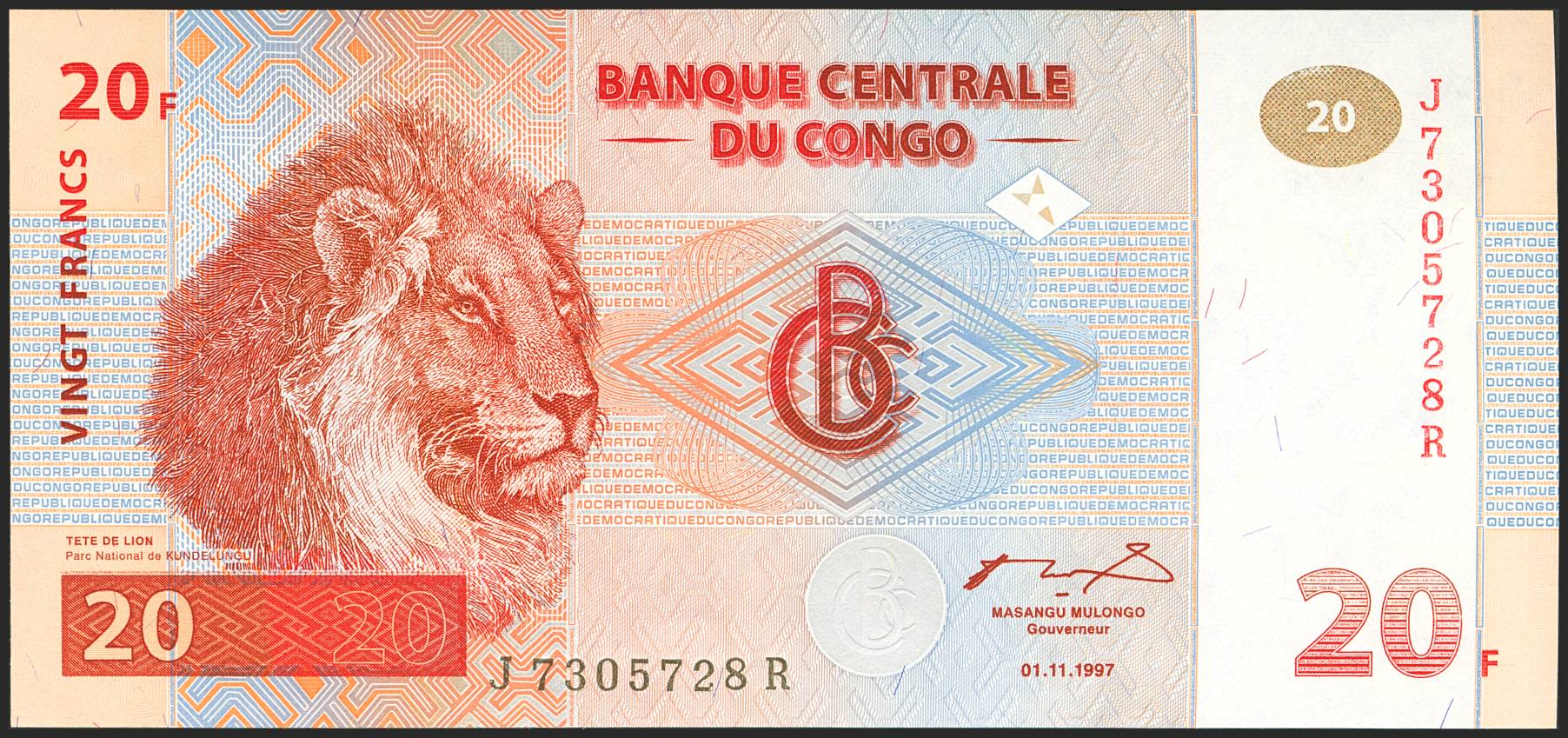 CONGO DEMOCRATIC REPUBLIC. 20 Francs. 1 November 1997. Central Bank. (Pick: 88A). Uncirculated.