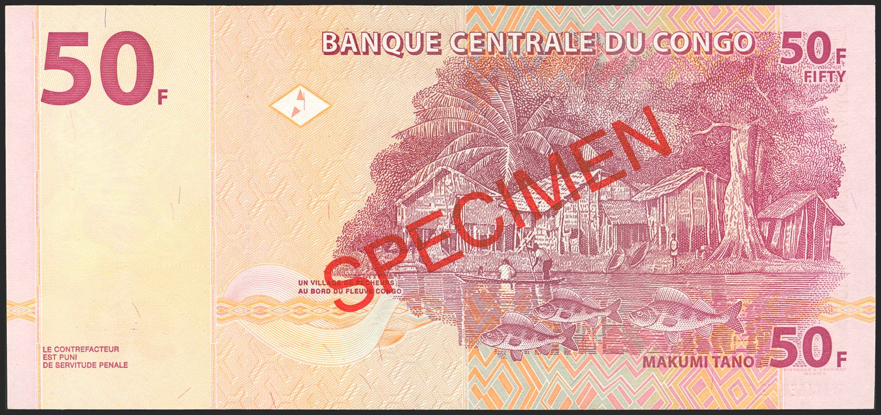 CONGO DEMOCRATIC REPUBLIC. 50 Francs. 4 January 2000. SPECIMEN and K0000000A. Central Bank. (Pick: 91s). Uncirculated.