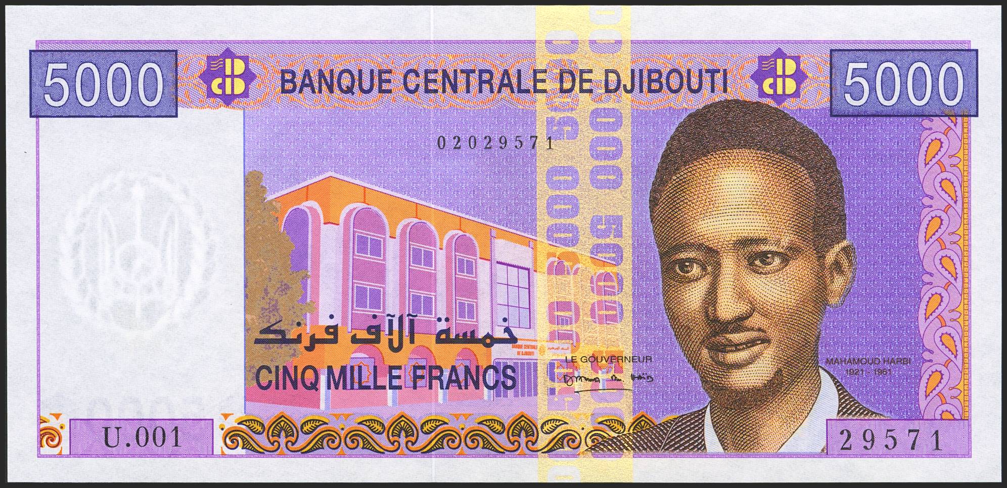 DJIBOUTI. 5000 Francs. (2002ca). Central Bank. (Pick: 44). Uncirculated.