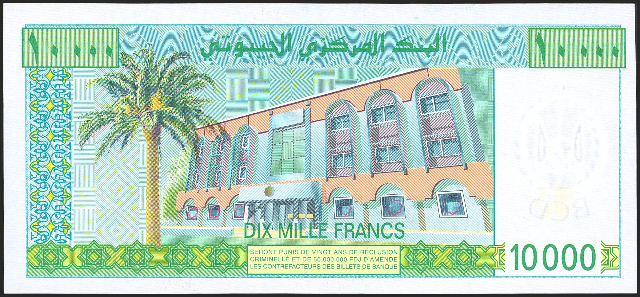 DJIBOUTI. 10000 Francs. (2005ca). Central Bank. (Pick: 45). Unusual in this quality. Uncirculated.