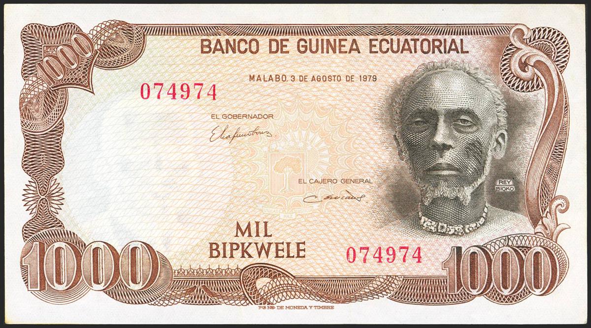 EQUATORIAL GUINEA. 1000 Bipwele. 3 August 1979. Banco de Guinea Ecuatorial. (Pick: 16). About Uncirculated.