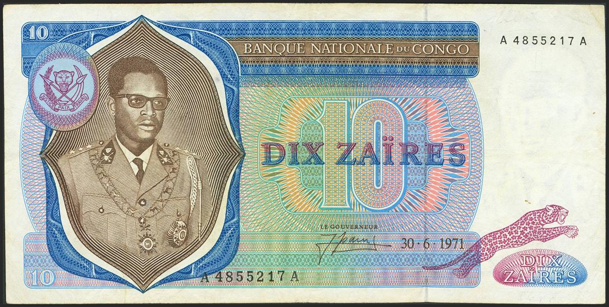 CONGO DEMOCRATIC REPUBLIC. 10 Zaires. 30 June 1971. Bank Nationale. (Pick: 15a). Very Fine.