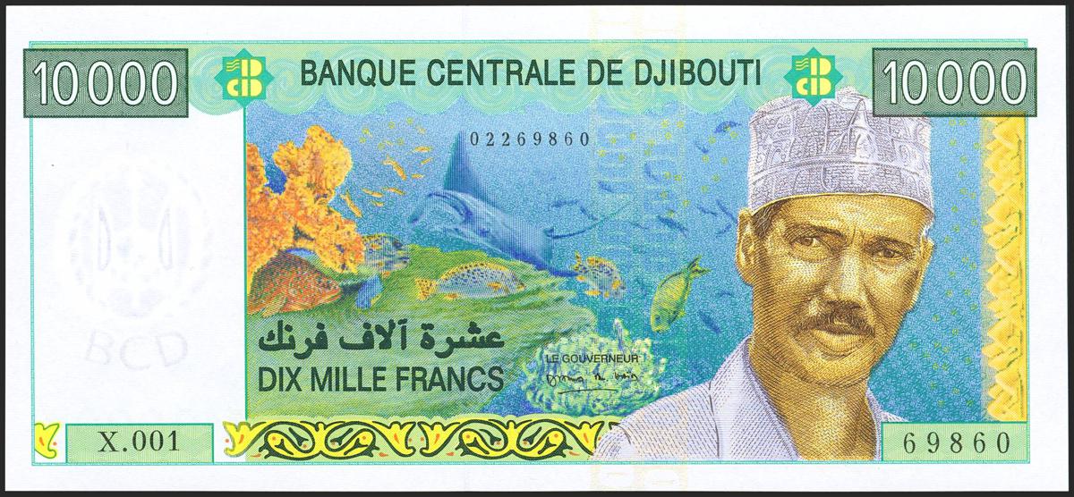 DJIBOUTI. 10000 Francs. (2005ca). Central Bank. (Pick: 45). Unusual in this quality. Uncirculated.