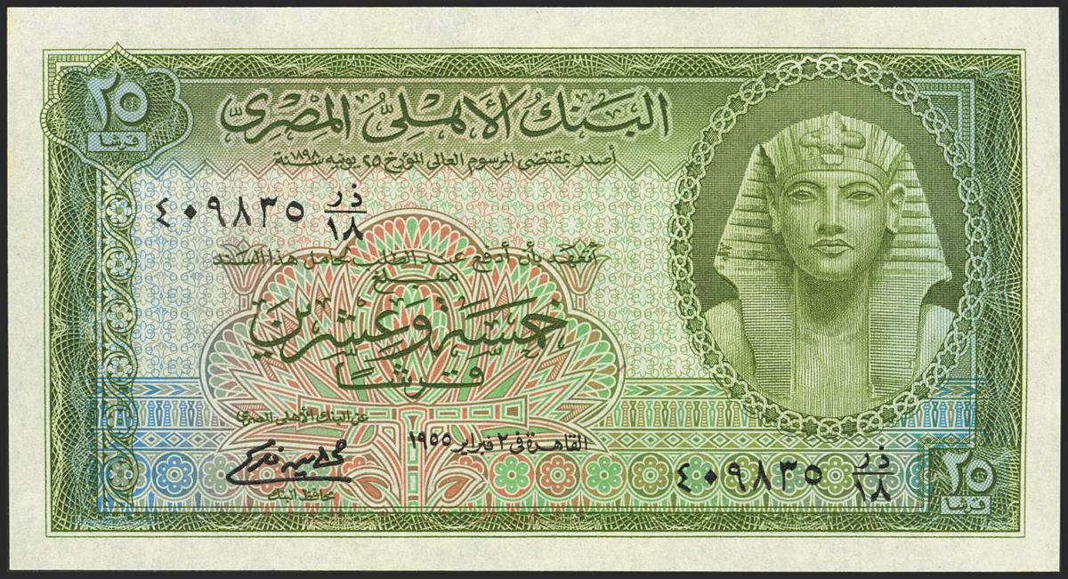 EGYPT. 25 Piastres. (1956ca). National Bank. (Pick: 28). Less than Uncirculated.