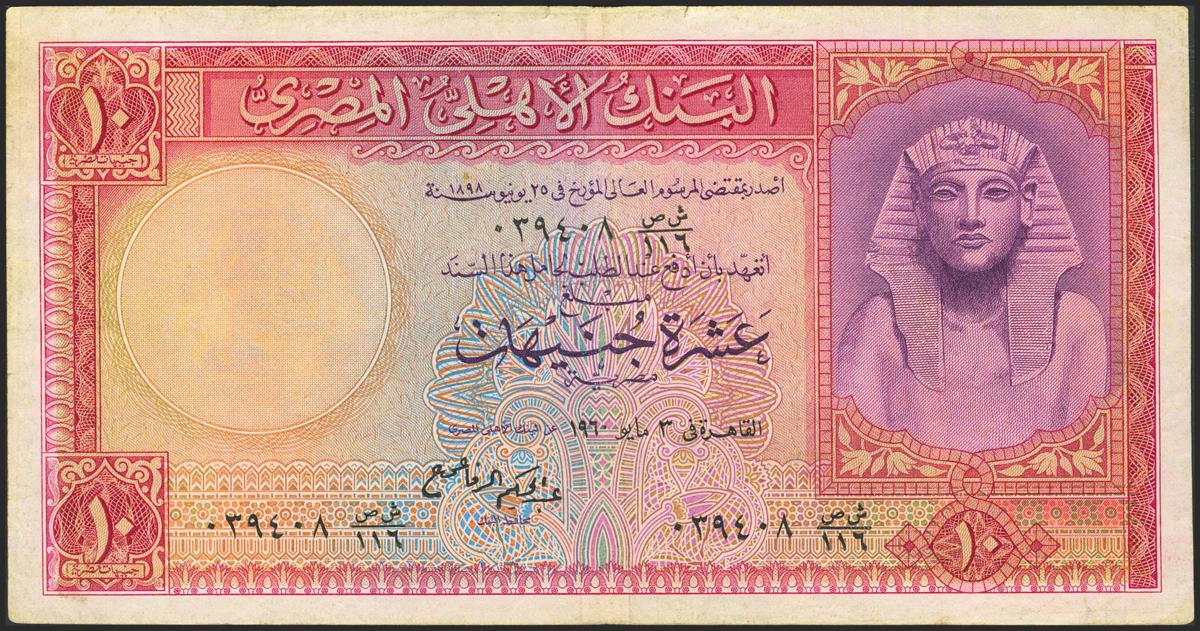 EGYPT. 10 Pounds. (1956ca). National Bank. (Pick: 32). Very Fine.