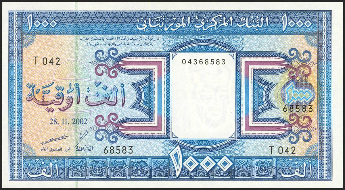 MAURITANIA. 1000 Ouguya. 28 November 2002. Banque Centrale. (Pick: 9c). Uncirculated.
