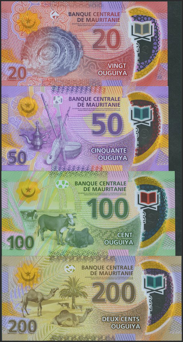MAURITANIA. Lot of 4 notes of 20 Ouguya, 50 Ouguya, 100 Ouguya and 200 Ouguya. 2017. Banque Centrale. (Pick: A22, 22, 23, 24). Uncirculated.