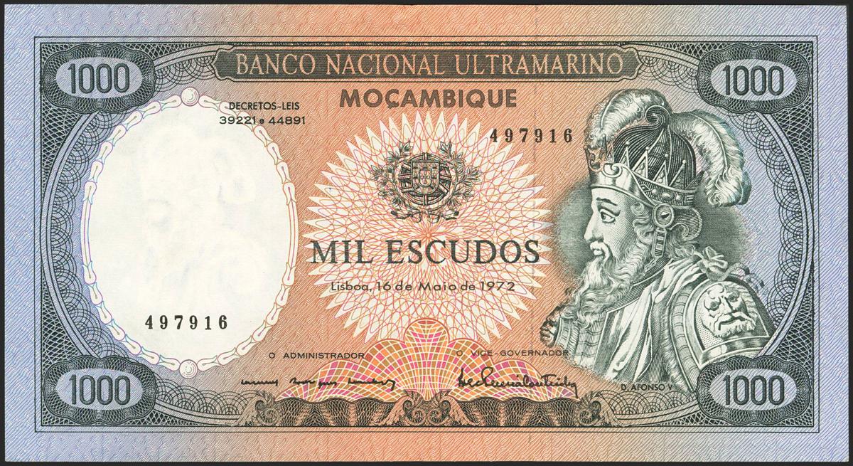 MOZAMBIQUE. 1000 Escudos. 16 May 1972. Banco Nacional Ultramarino. (Pick: 112). Extremely Fine.