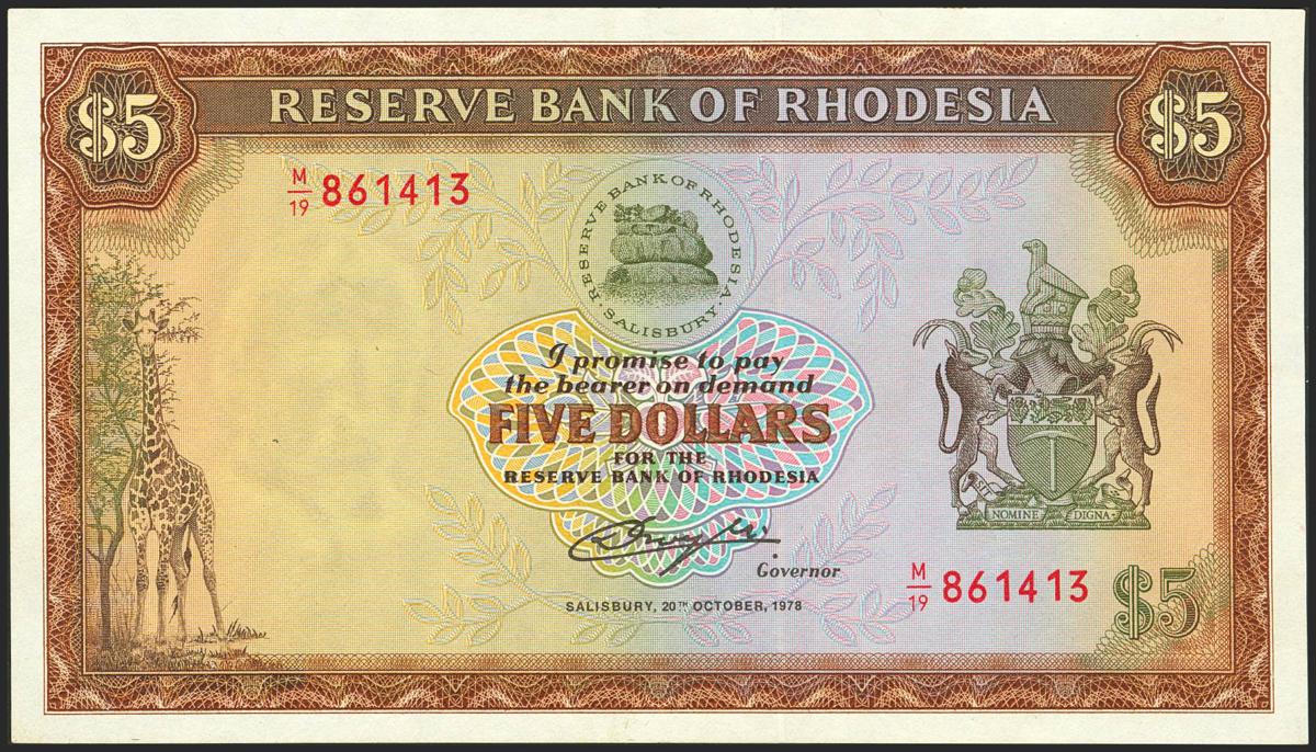 RHODESIA. 5 Dollars. 20 October 1978. Reserve Bank. (Pick: 36b). More than Very Fine.