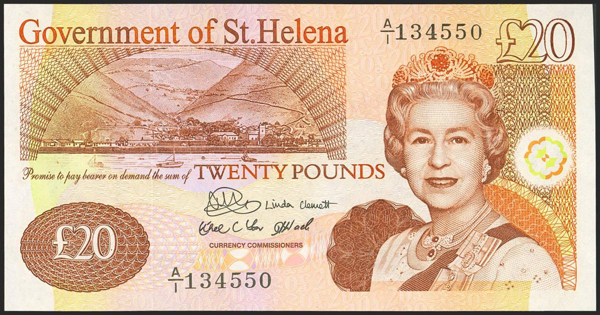 SAINT HELENA. 20 Pounds. (1986ca). Government of St. Helena. (Pick: 10). Uncirculated. PMG SI.