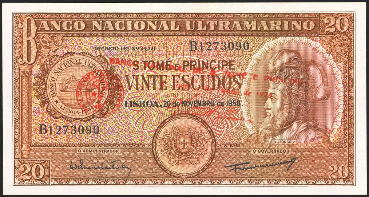 SAINT THOMAS AND PRINCIPE. 20 Escudos. 7 June 1976. Banco Nacional. (Pick: 44a). Uncirculated.